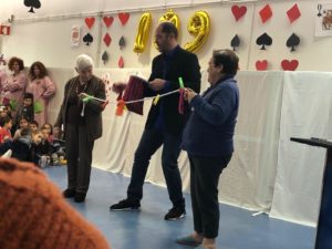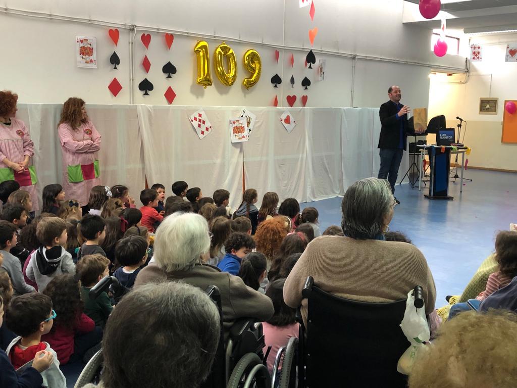 Não faltou o bolo de aniversário e cantados os parabéns por um vasto coro intergeracional, formado por idosos, crianças, funcionárias e a intervenção do Sr. Provedor.
