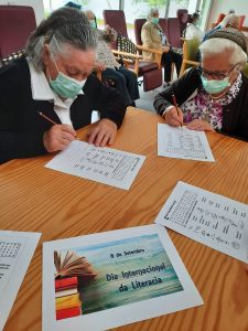 As pessoas mais velhas do Centro de Dia não deixaram de assinalar a importância deste tema – Aprendizagem ao Longo da Vida – Literacia para todos. Neste dia, aos idosos foram apresentadas dinâmicas de promoção da inclusão da literacia digital. Procurou-se em grupo intrageracional, refletir sobre os desafios e aspetos relevantes de uma promoção bem-sucedida da literacia.