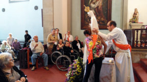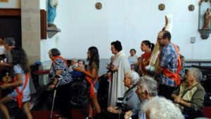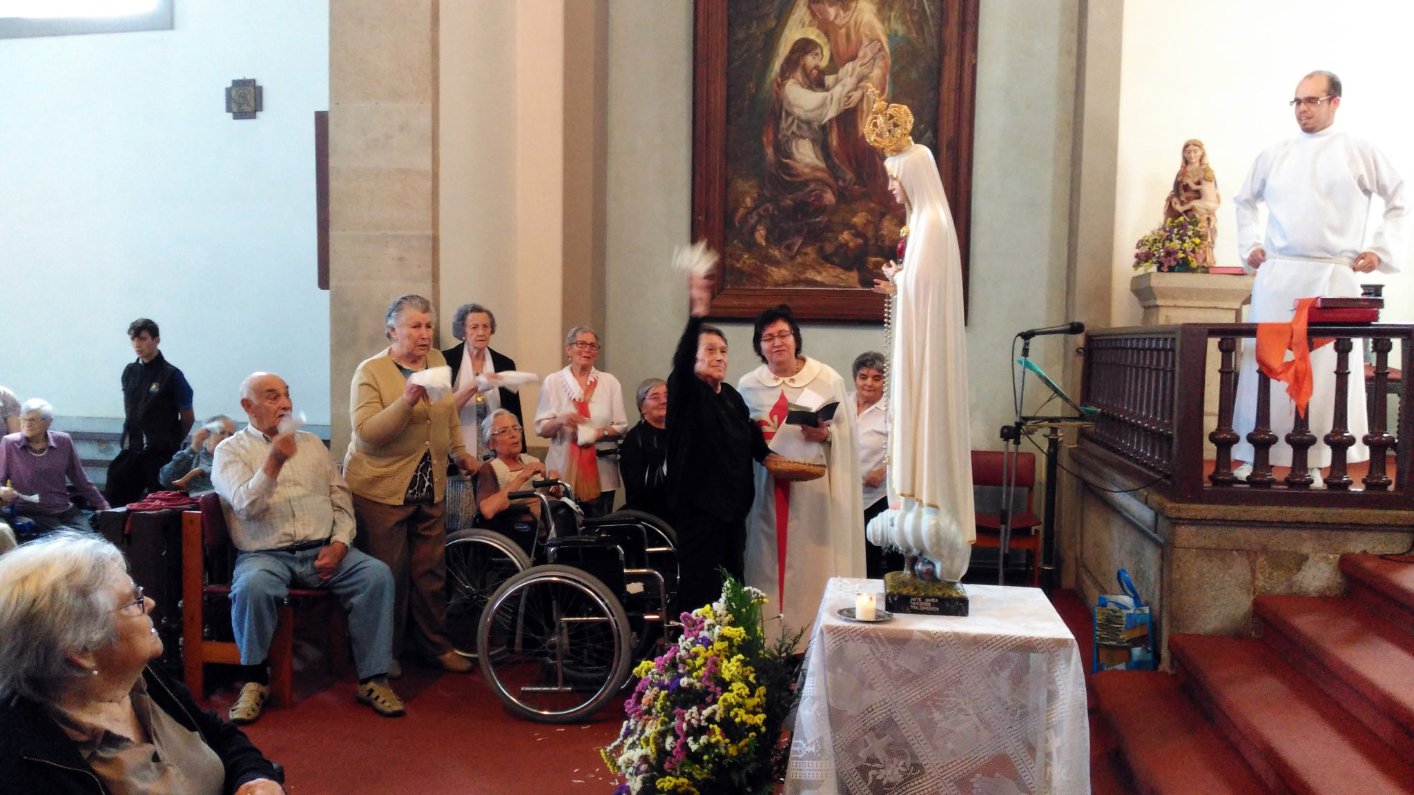 Os utentes do Lar da Misericórdia de Ovar participaram na cerimónia, a convite da Associação de Arautos do Evangelho, ao levar a imagem e os objetos da nossa Senhora de Fátima.