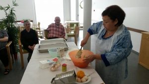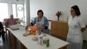 No passado dia 25 de maio as pessoas idosas da resposta social de Centro de Dia tiveram o privilégio de receber a Tia Gusta, uma especialista em culinária que lhes ensinou a fazer bolachas de aveia. Ao longo da atividade a Tia Gusta foi explicando aos idosos como fazer as suas deliciosas bolachas e, por fim, os idosos tiveram a oportunidade de se deliciarem com as bolachinhas. Foi uma manhã muito animada onde prevaleceu a animação e o convívio intrageracional.