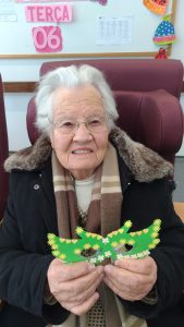 No dia 5 de fevereiro os idosos da resposta social de Centro de Dia tiveram a oportunidade de realizar um ateliê de trabalhos manuais cujo o tema foi o Carnaval. Esta atividade tinha como principal objetivo a construção de uma máscara, apelando assim a todos os idosos a sua imaginação e criatividade.