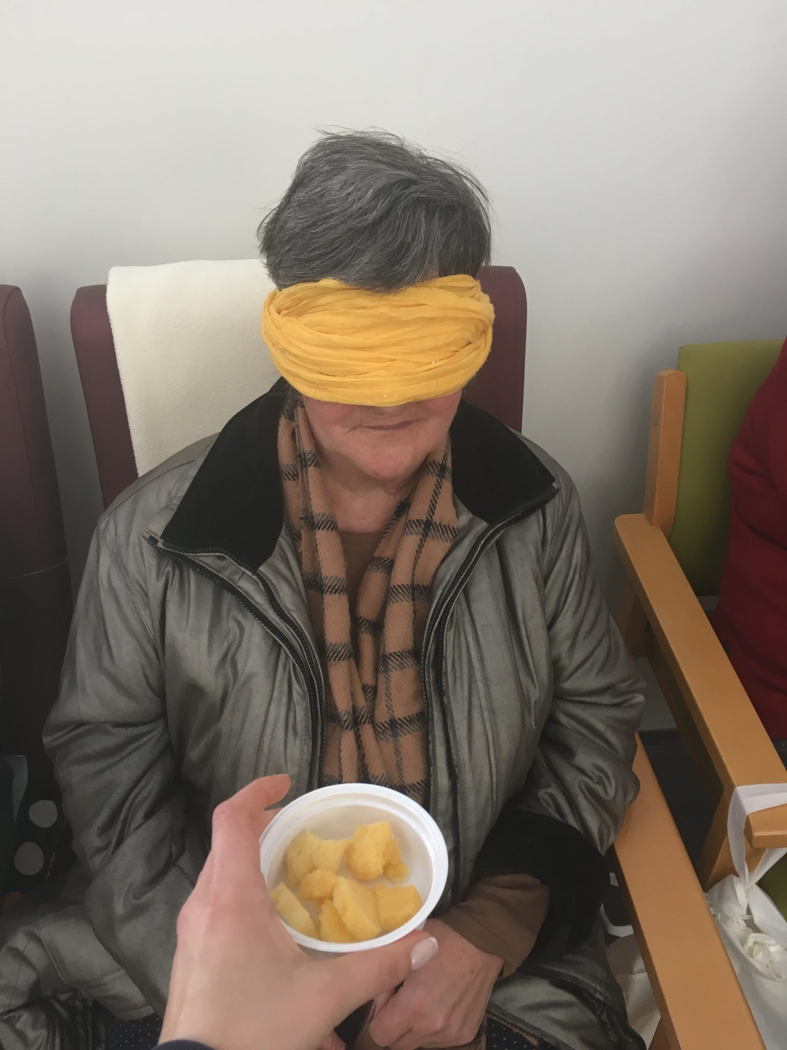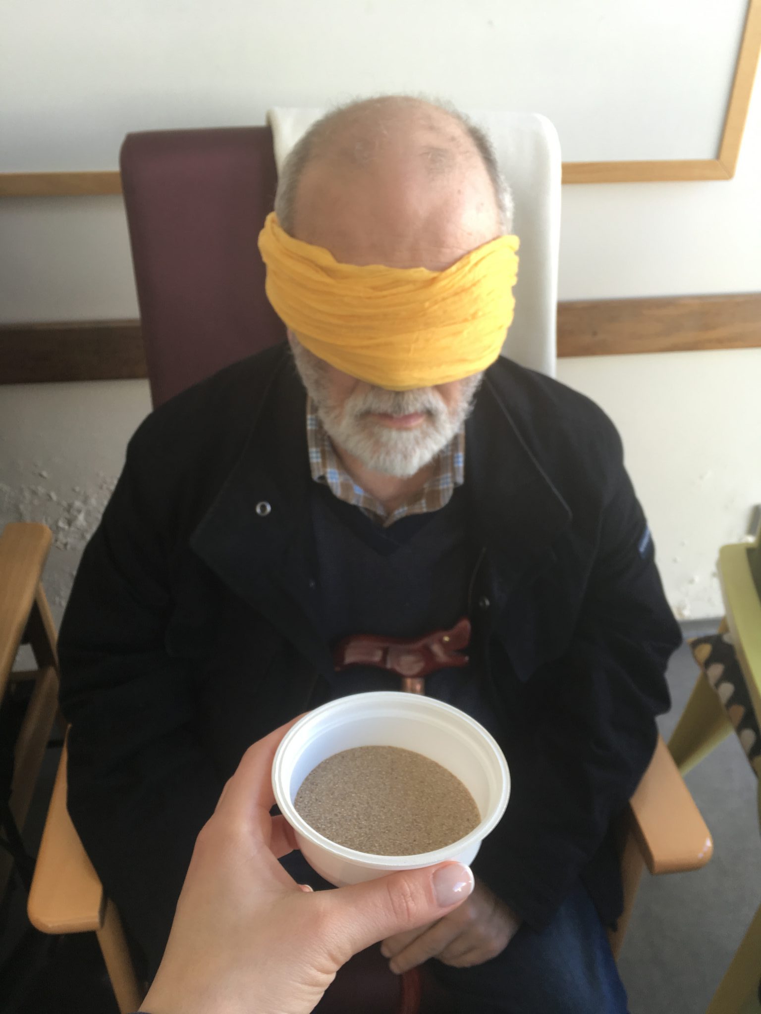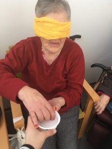 No passado dia 06 de março realizou-se com os idosos da resposta Centro de Dia – Unidade “Nós de Memória” uma atividade de estimulação sensorial. Esta consistiu na identificação de diferentes texturas recorrendo à discriminação tátil e sem recurso à visão.