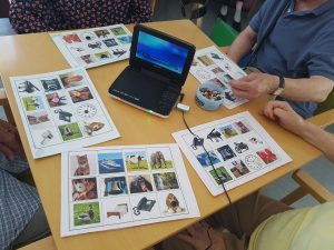 Esta atividade terapêutica tem como objetivo a estimulação de funções cognitivas nomeadamente: atenção seletiva e mantida, concentração, memória de curto e longo prazo, promoção da discriminação de sons e promoção da interação social.