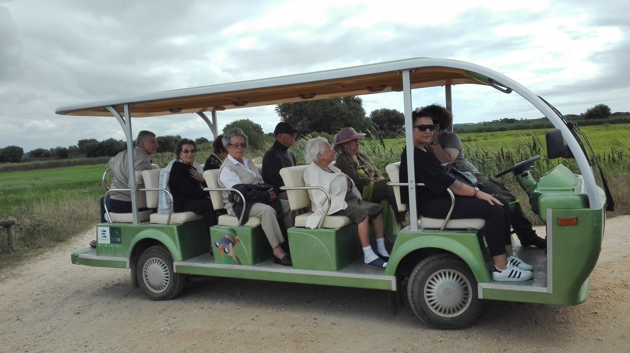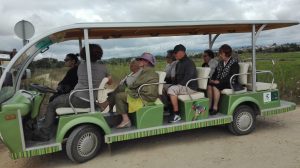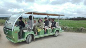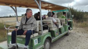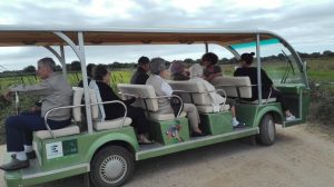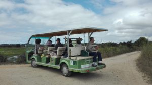 Logo à chegada, o nosso meio de transporte, que nos conduziu todo o percurso, suscitou risos e borburinhos pois não tinha portas nem janelas. Era um carro elétrico que devido à sua estrutura nos proporcionou um maior contacto com a natureza.