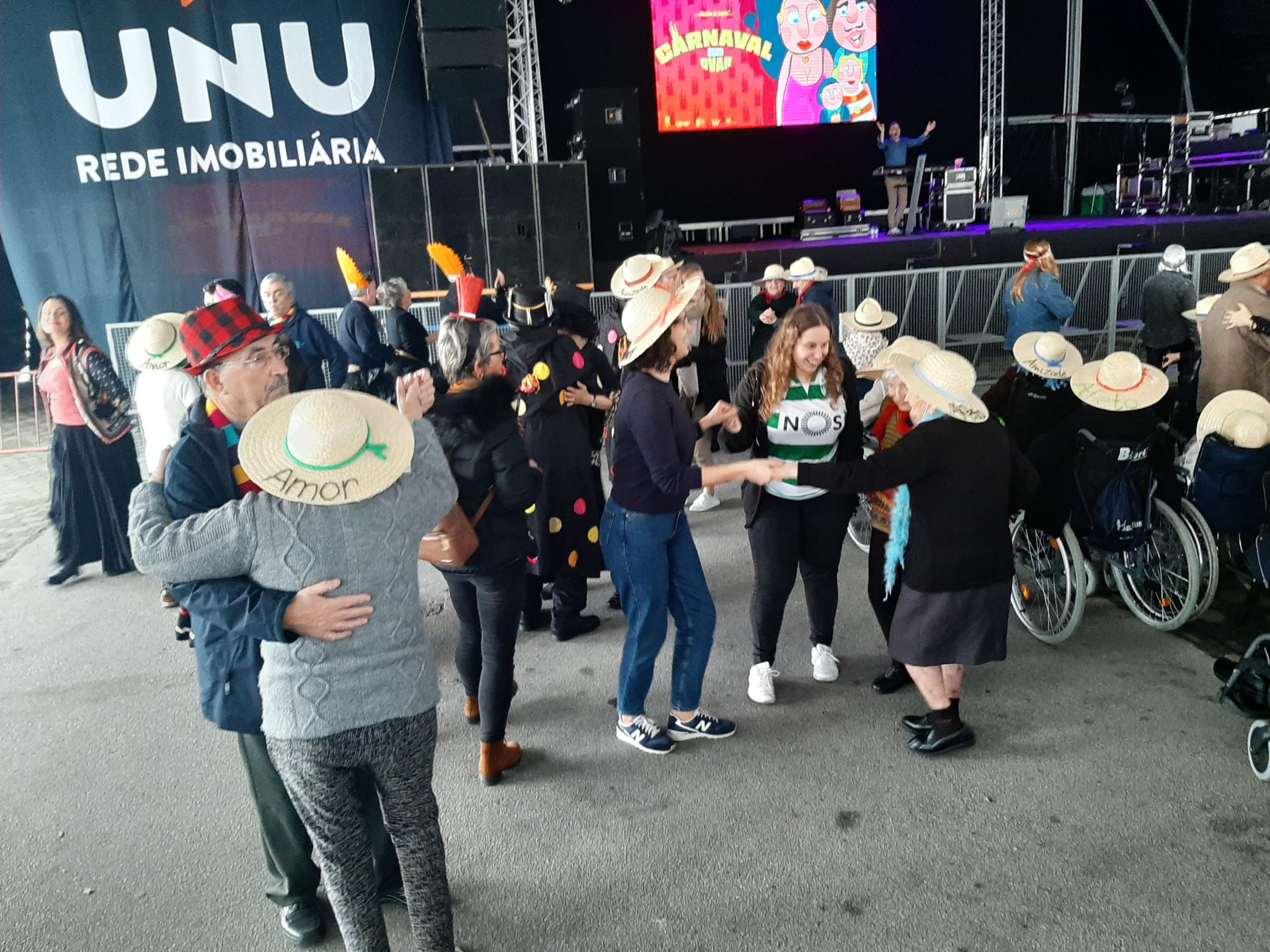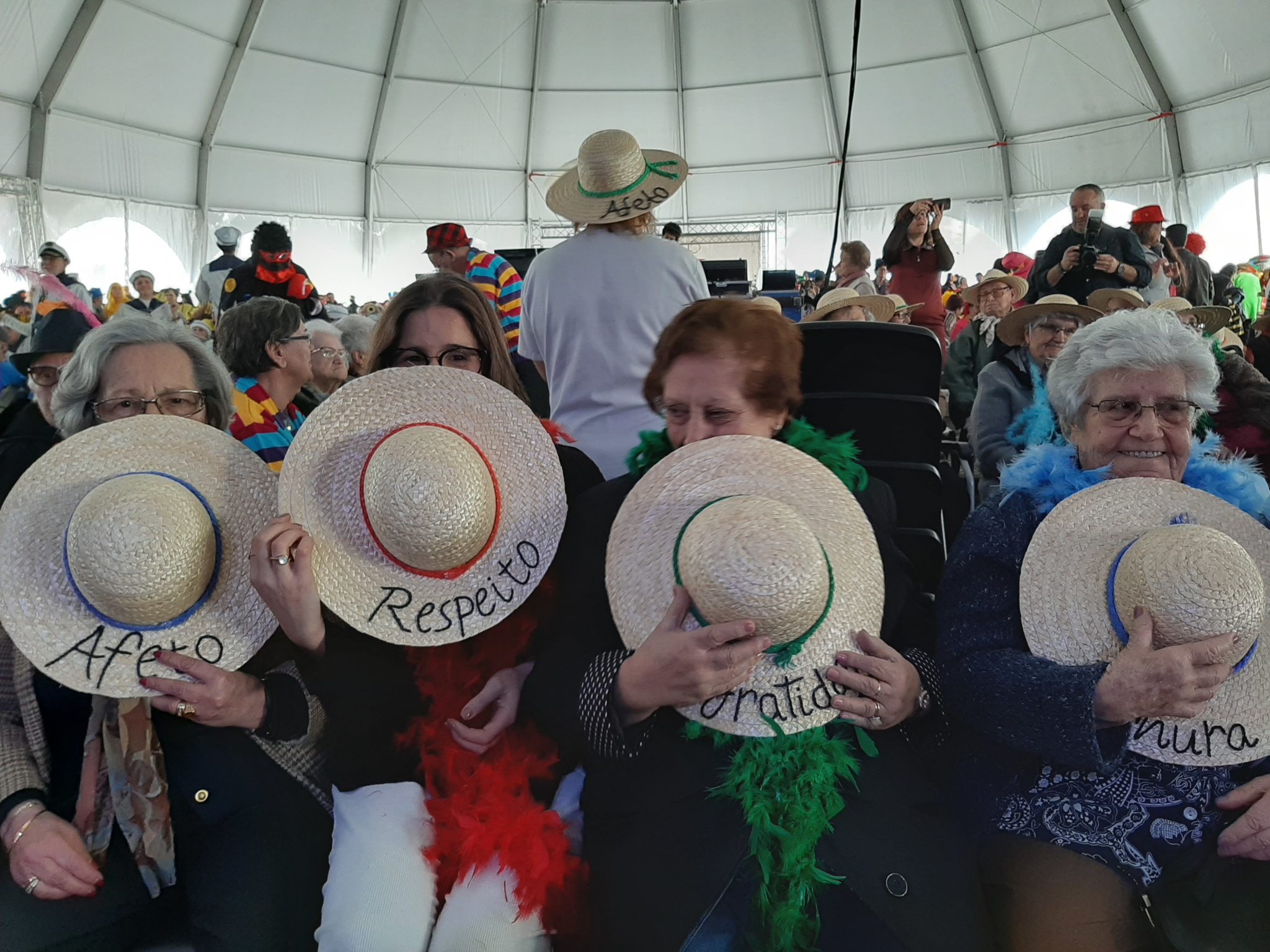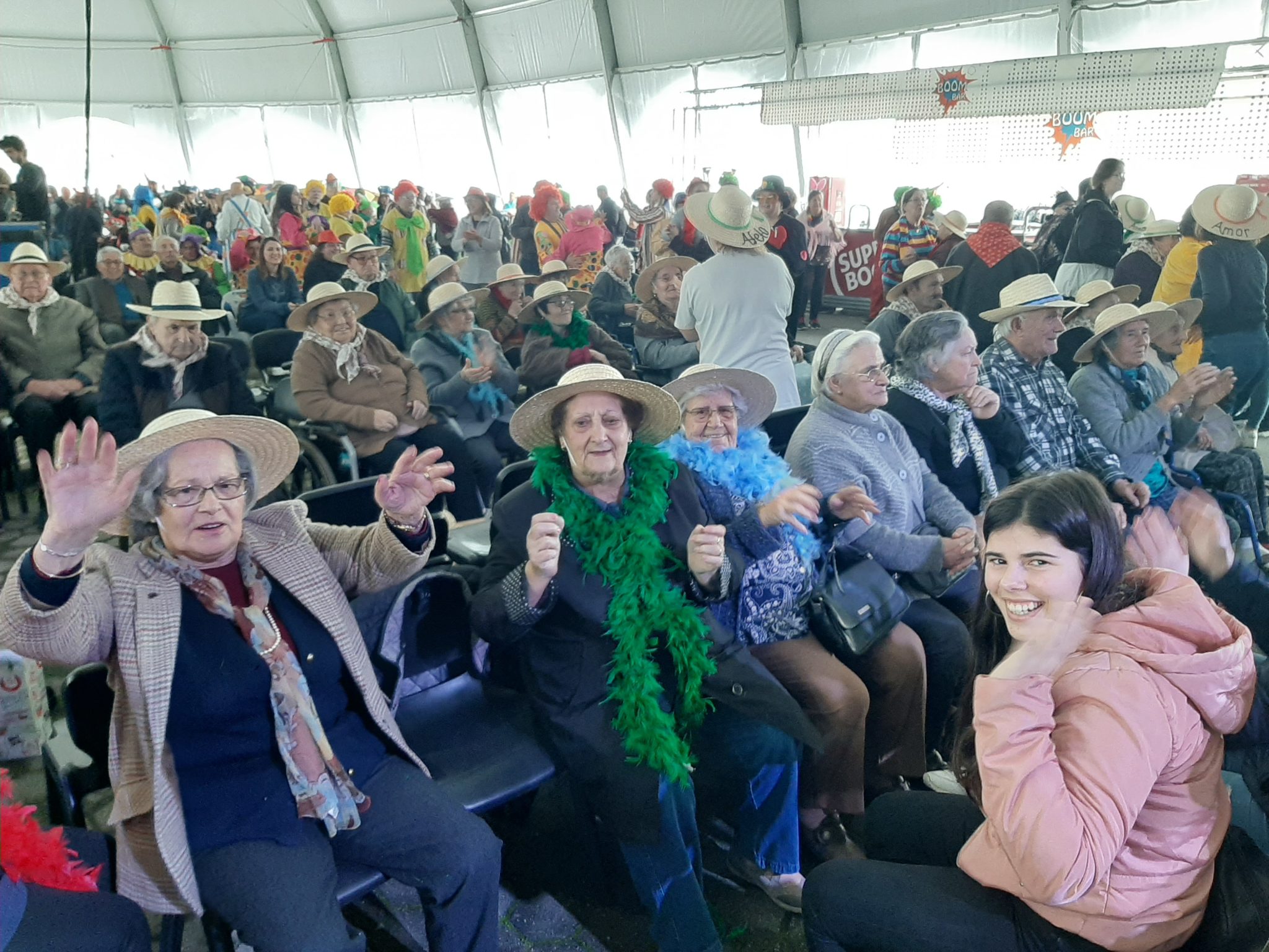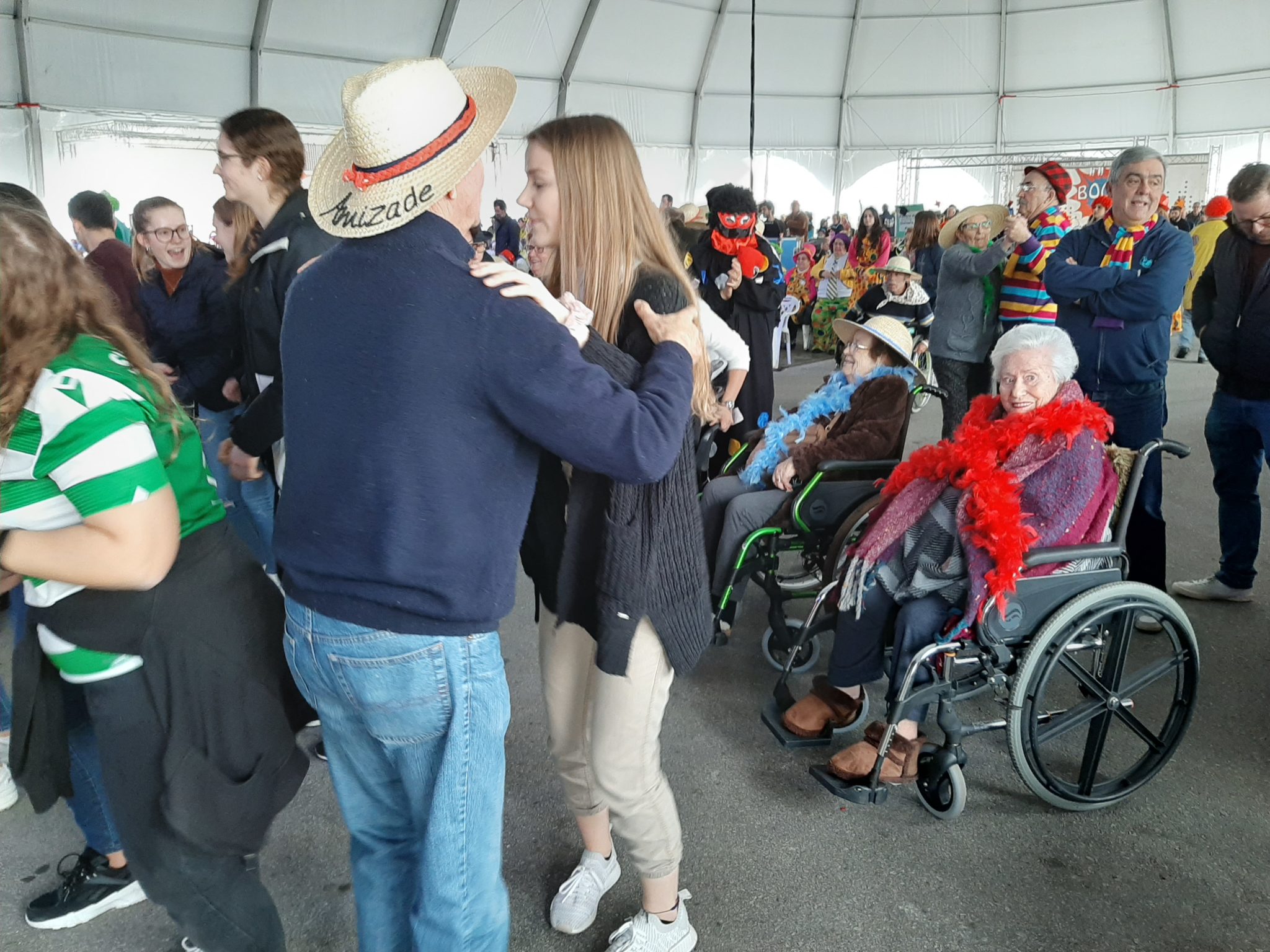 No passado dia 13 de Fevereiro alguns residentes da Casa de S. Thomé juntaram-se aos idosos da ERPI sede e Centro de Dia da Santa Casa da Misericórdia de Ovar e foram usufruir de uma tarde de muita alegria, música e dança. Nesta tarde reservada aos seniores do concelho, foram várias as instituições que participam levando os seus disfarces de carnaval. Este ano, a Santa Casa da Misericórdia de Ovar, aproveitou a ocasião para transmitir uma mensagem decorando chapéus de palha com os valores da instituição. União, gratidão, amizade, afeto, Amor entre outros foram os escolhidos para este dia de muita jovialidade.
