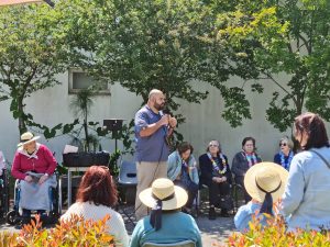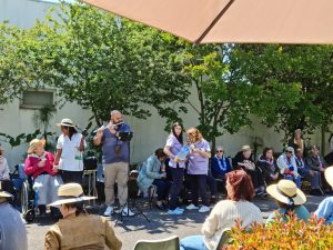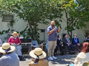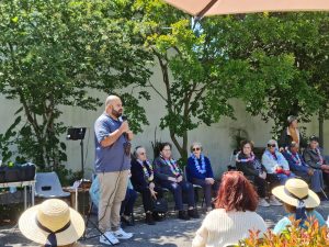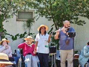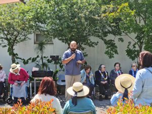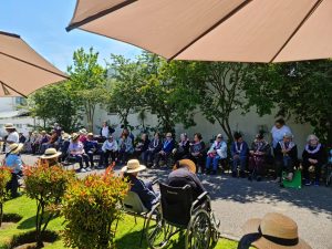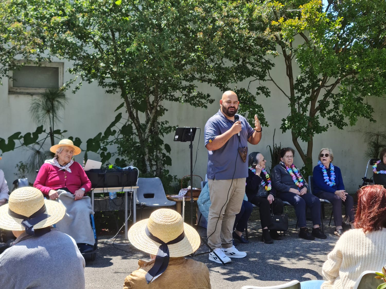 Para começar o evento foi marcado por um momento tocante: uma idosa criou e interpretou uma música original, como forma de agradecimento e homenagem ao Centro de Dia e suas colaboradoras. As suas palavras carregadas de carinho tocaram todos os presentes, dando início à celebração com grande significado e ternura.