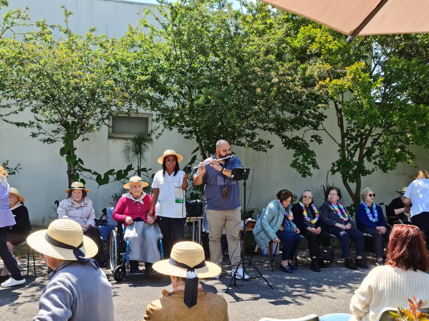 A programação prosseguiu com duas danças interpretadas por dois grupos de utentes, com o apoio dedicado das técnicas. As danças encantaram todos os presentes, pois refletiu a energia e o espírito participativo dos idosos.