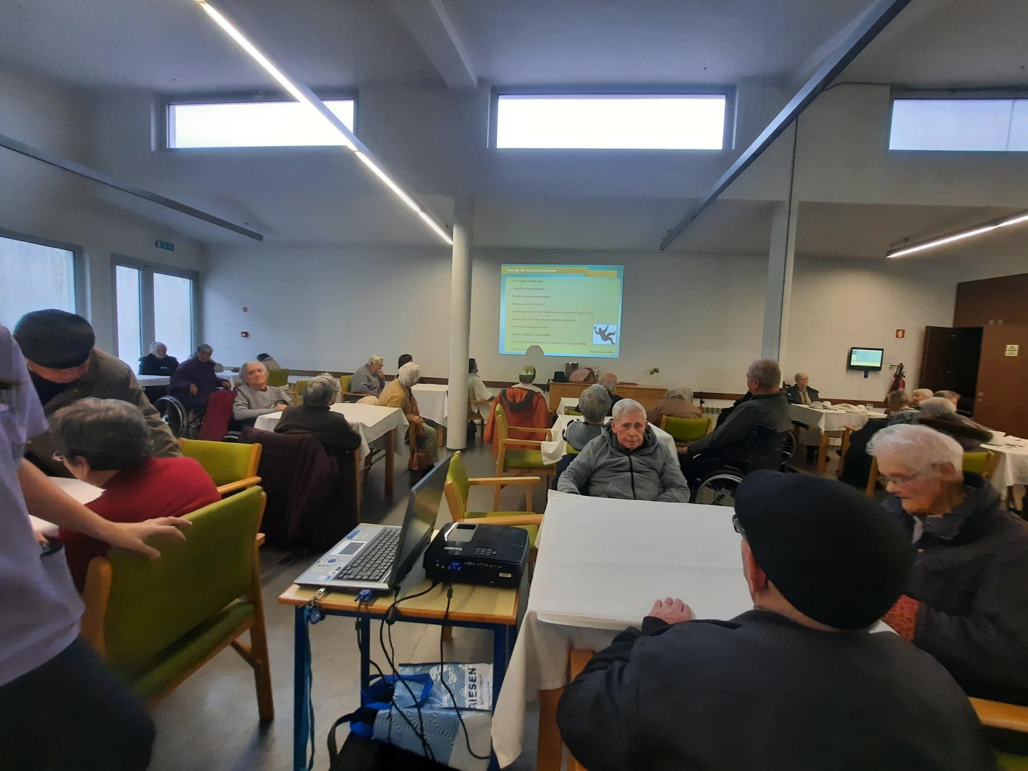 Foi partilhado, que a queda poderá provocar fraturas, traumatismos cerebrais e lesões nos músculos que irão diminuir a capacidade da pessoa mais velha de se movimentar e realizar as suas atividades diárias, de modo independente, diminuindo a sua qualidade de vida.