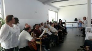 Depois deste momento, foi a vez do coro do Centro de dia (orientado pelos nossos voluntários, Sr. Carlos Baldaia, Dª. Leonor e Dª. Helena) fazerem a sua atuação, interpretando várias músicas tradicionais e terminando com a música da Bênção das Famílias.