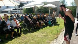 No dia 6 de abril comemorou-se o dia Mundial da Atividade Física. Assim, as três respostas sociais da Santa Casa da Misericórdia de Ovar (Centro de Dia, Estrutura Residencial para Idosos e Casa de São Thomé) juntaram-se, no jardim do Centro de Dia, para puderem assinalar esta data. Esta atividade foi dinamizada pelas animadoras e por um estagiário de educação física que também prestou o seu contributo. Assim, esta atividade foi iniciada com uma palestra sobre a importância da atividade física para os idosos, onde também foi abordado o tema da importância da Hidratação. Após esta palestra os idosos puderam colocar questões e esclarecerem as suas dúvidas. De modo a criar momentos lúdicos, o estagiário também preparou questões de Verdadeiro e Falso onde os idosos tinham que responder com uma raquete que tinham na mão (onde continha o V – de Verdadeiro e o F – de Falso).