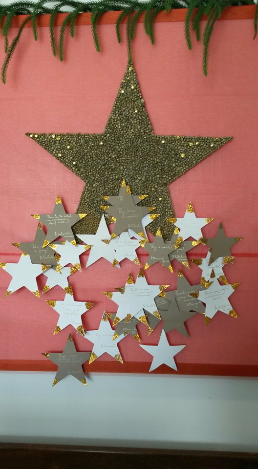 Este ano o material eleito foi a serapilheira e com ele decoraram a árvore de Natal, o calendário de Natal e o presépio. Fizeram ainda um anjo e estrelas que ficaram a decorar o placard com os desejos de Natal. Para decorar o refeitório, foi construída uma coroa de Natal e os utentes da Unidade “Nós da Memória” decoraram garrafas natalícias.
