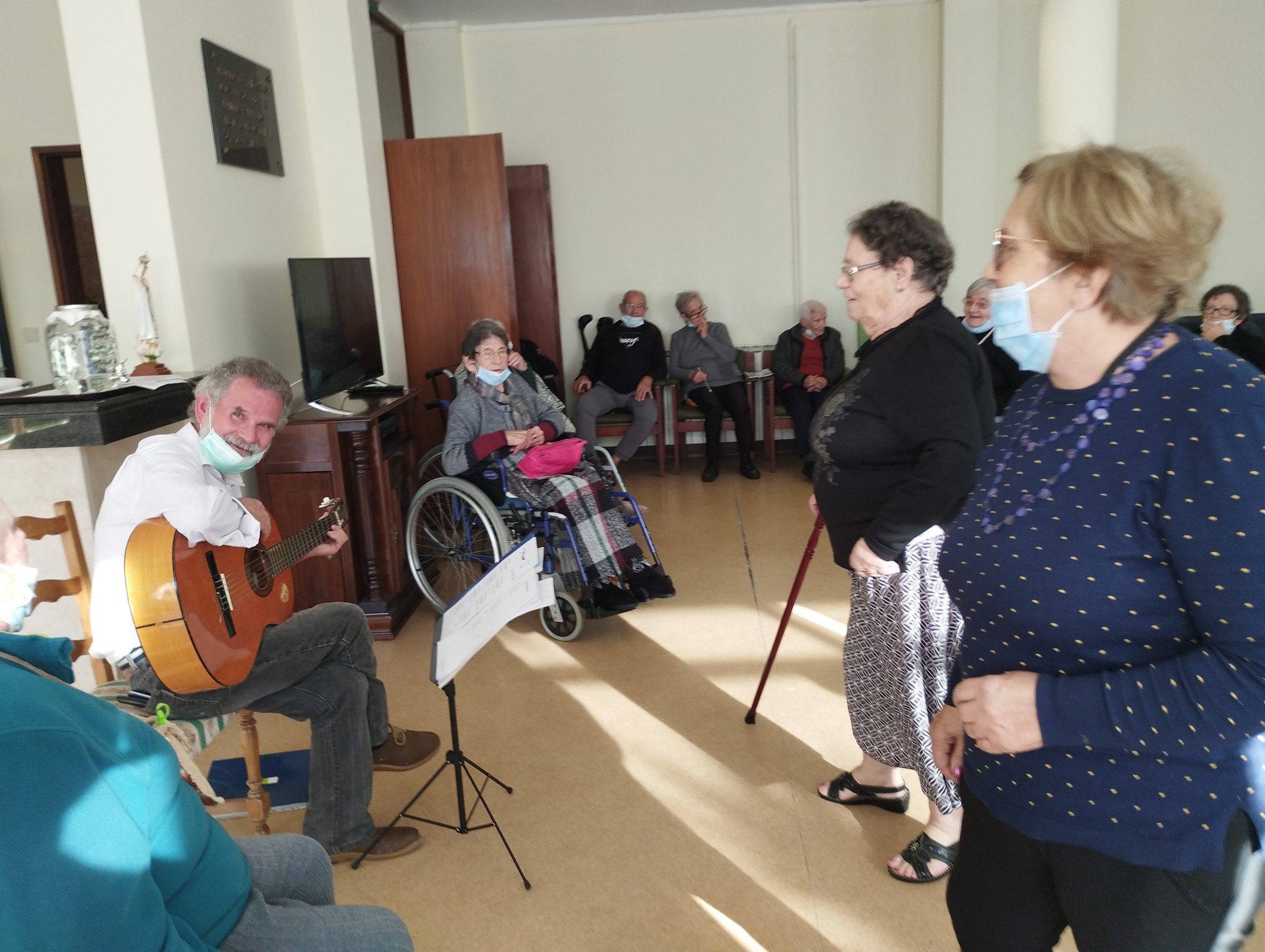 Da parte da tarde, o nosso voluntário Delfim Lima acompanhado da sua guitarra, proporcionou uma tarde bastante animada com música e dança que fez o agrado dos idosos e funcionárias que participaram na festa. Houve ainda um momento de troca de provérbios entre os participantes.
