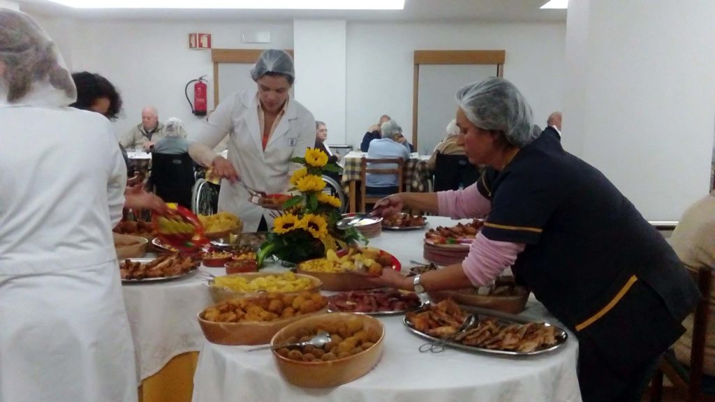 À noite, e porque os festejos ainda não tinham acabado, os utentes do lar foram presentados com um jantar diferente em modo buffet.