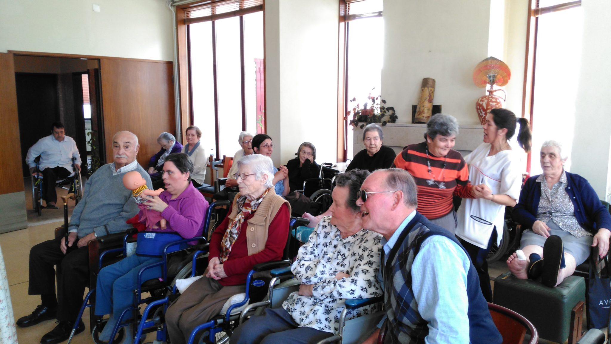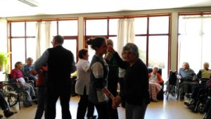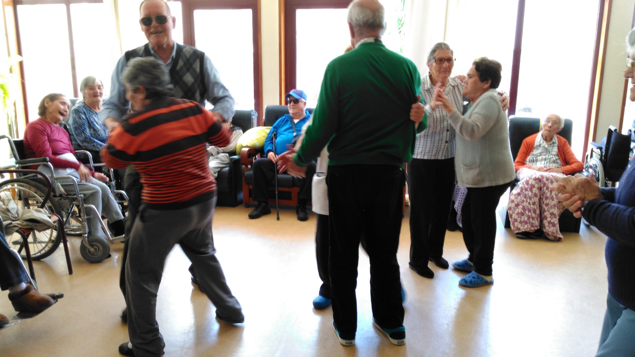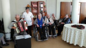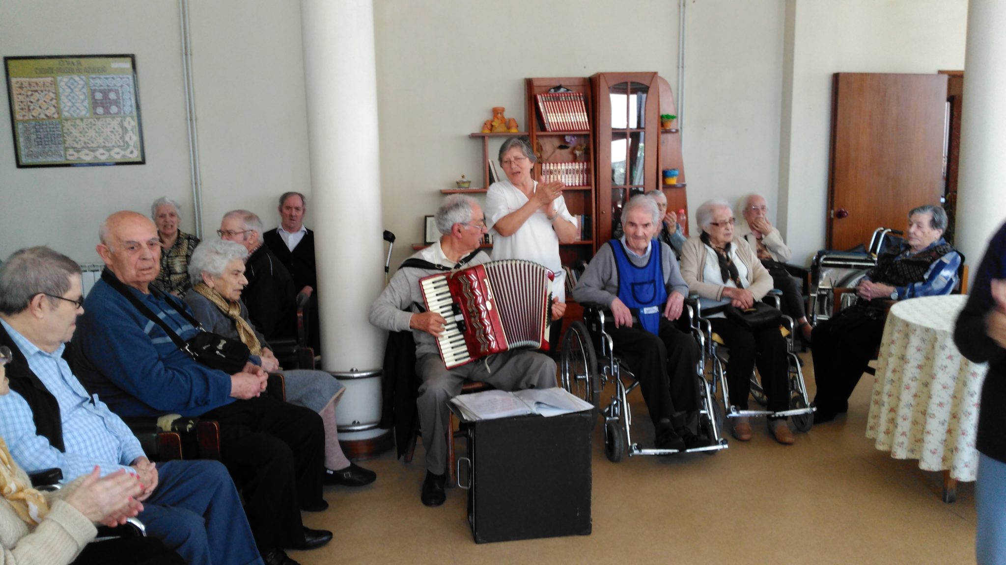 Como é habitual todas as sextas-feiras à tarde, recebemos sempre o Sr. Abílio, voluntário da Santa Casa da Misericórdia de Ovar. Trouxe o seu acordeão, e com a sua música divertiu os idosos que também ajudaram a cantar. Como era Dia Mundial da Dança não só cantaram, como aproveitaram para dançar.