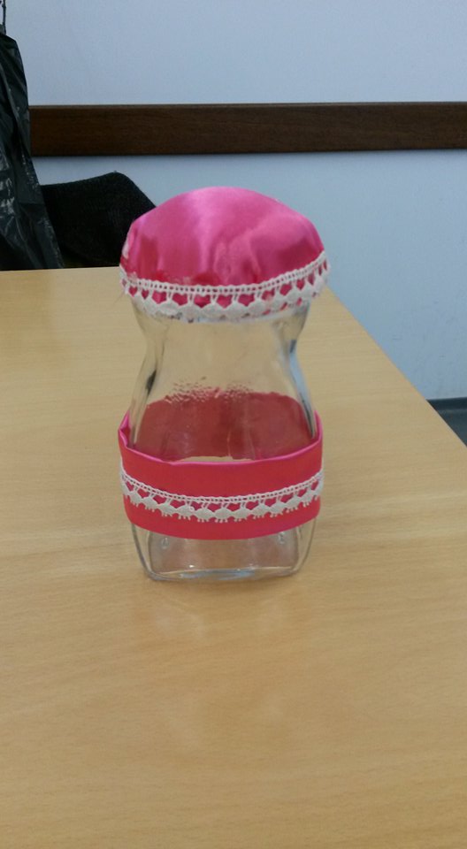 Para terminar esta manhã, a convidada desta atividade ainda ensinou como reaproveitar os frascos vazios, decorando-os com tecido e dando até a sugestão de enche-los com bolachas para oferecer um miminho a alguém que se goste.