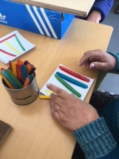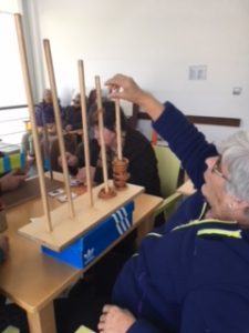 No passado dia 9 de fevereiro realizou-se um circuito de atividades com as pessoas idosas, da unidade “Nós da Memória” do Centro de Dia. Foram desenvolvidas diversas atividades, com definição de quatro objetivos, de acordo com o exercício concretizado. Deste modo o primeiro consistia na colocação das molas numa estrutura própria com vista a trabalhar a motricidade fina e destreza manual, a segunda a colocação de argolas a uma determinada altura para potenciar o movimento do ombro, a terceira a categorização das cores na respetiva imagem para a estimulação da perceção visual e, por fim, a última que tinha como objetivo a associação da imagem a cores com a sua figura-fundo que se encontrava a preto.