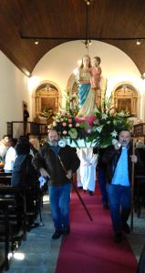 Pelas 11h00 assistiram à missa solene e no final assistiram à procissão que ocorre junto da capela.