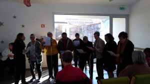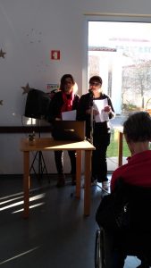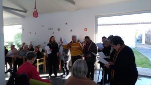 De seguida, a animadora e uma funcionária prepararam uma surpresa para todos os idosos: interpretaram um tema de Natal lindíssimo, intitulado por “Natal para todos”. Após este momento emotivo, chegara a hora de ler os desejos de Natal de todos os idosos. Depois, em colaboração com os três voluntários de ateliê de música, foi a vez da atuação do coro sénior do Centro de Dia.