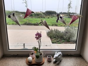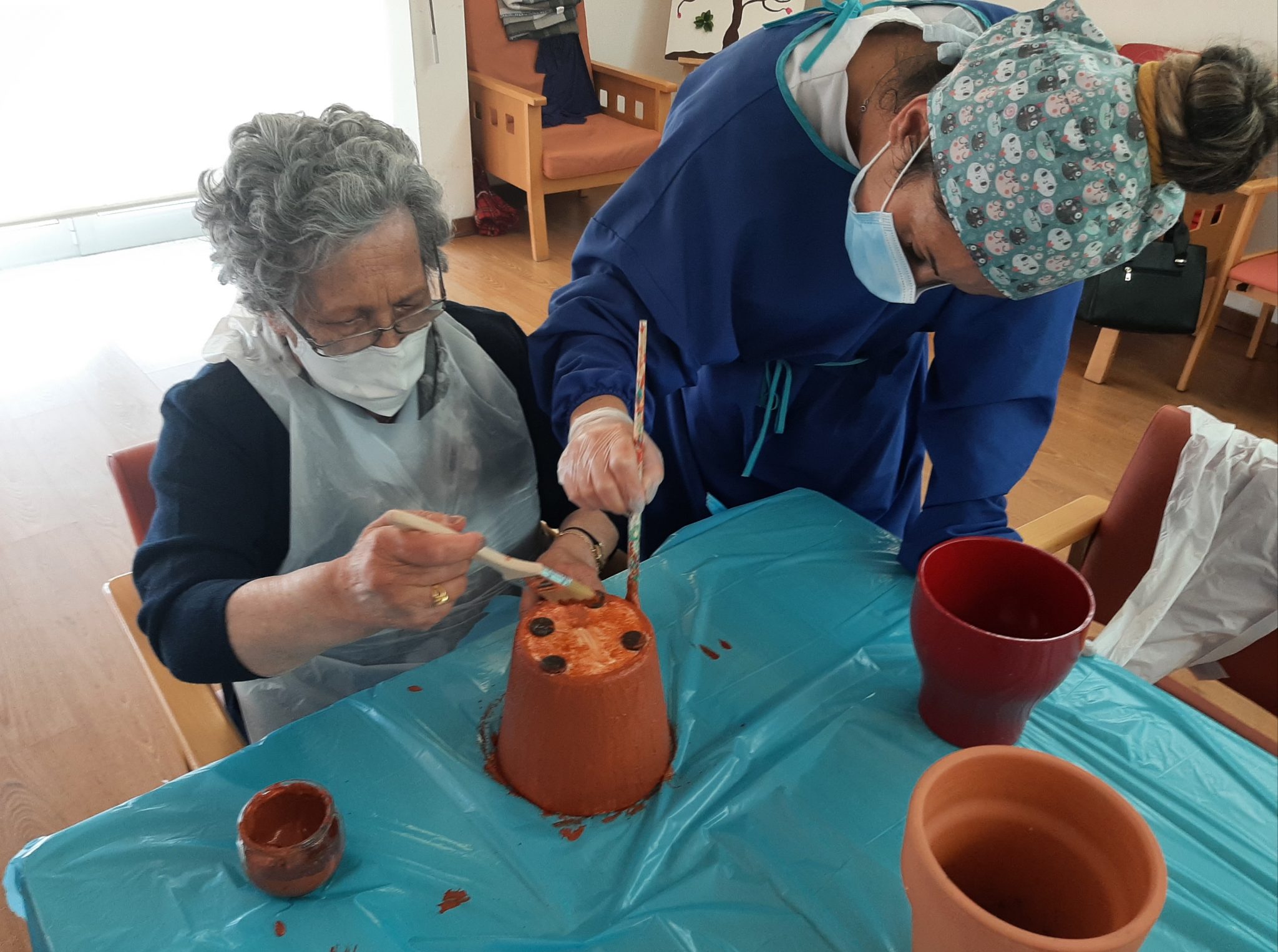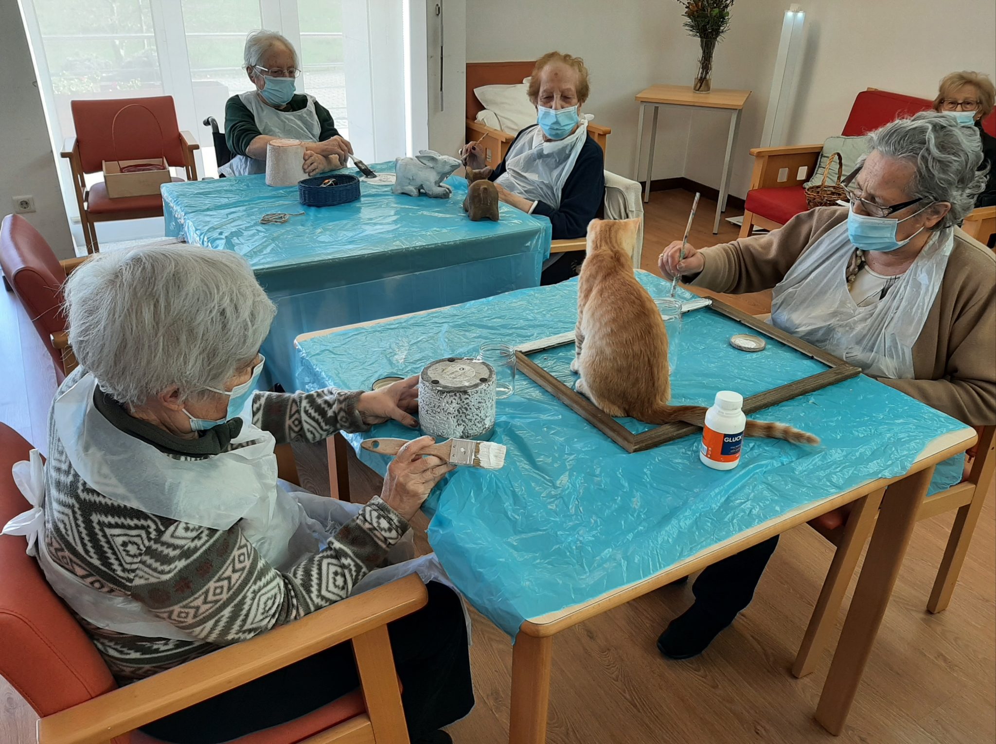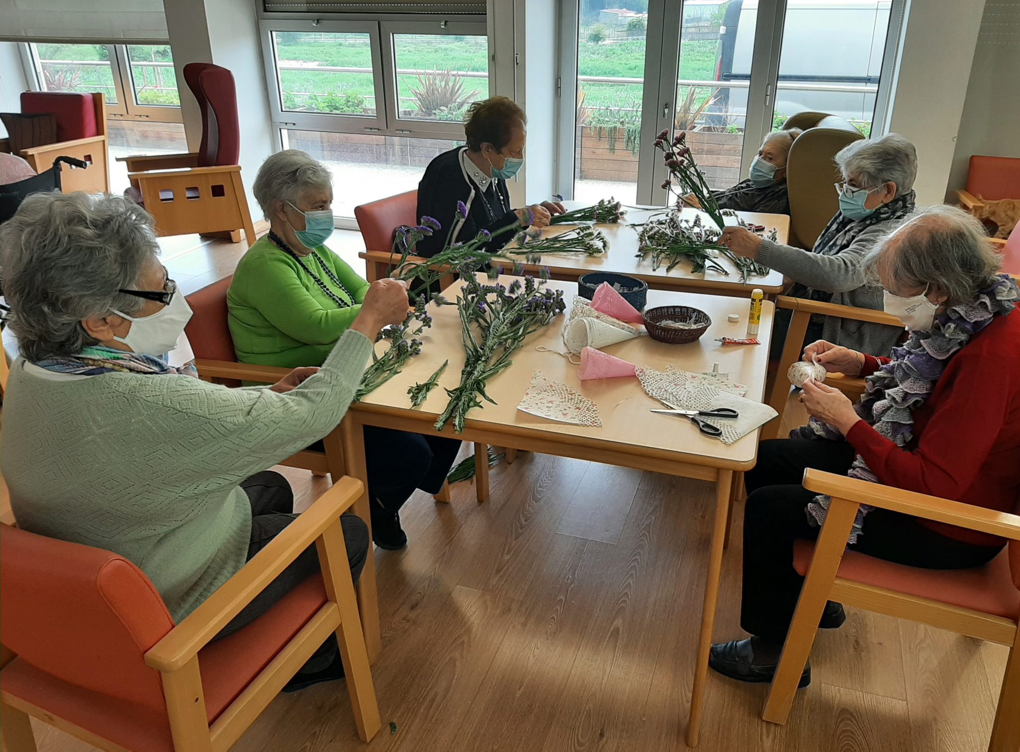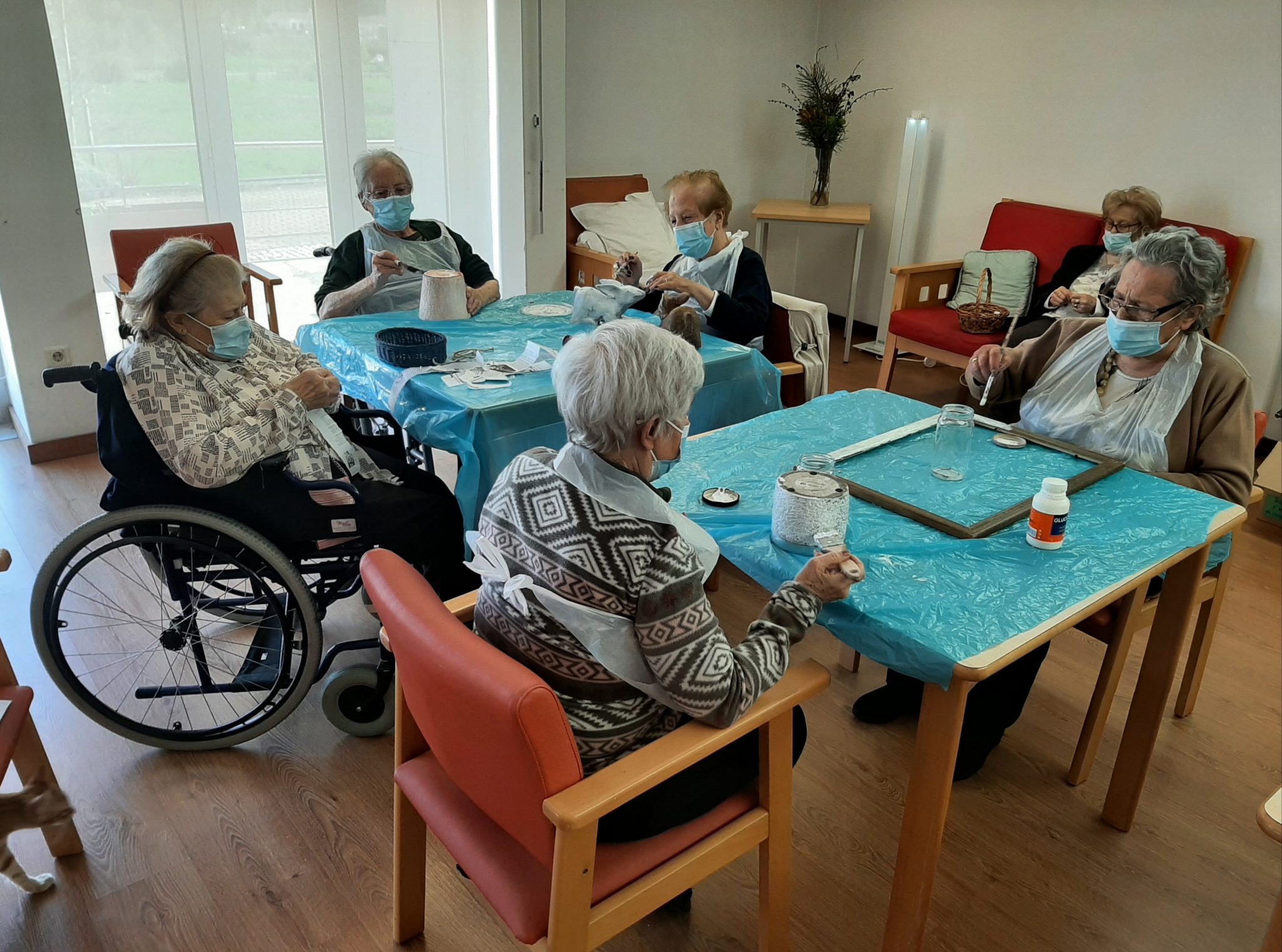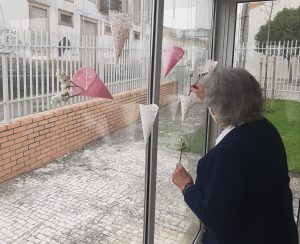 Recorrendo a técnicas de colagem e recorte, foram elaboradas decorações para as janelas da entrada da Casa e do espaço da portaria que de momento é uma área utilizada para divulgar trabalhos realizados pelos residentes nas atividades de animação.
