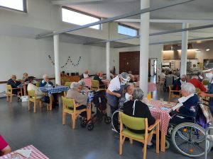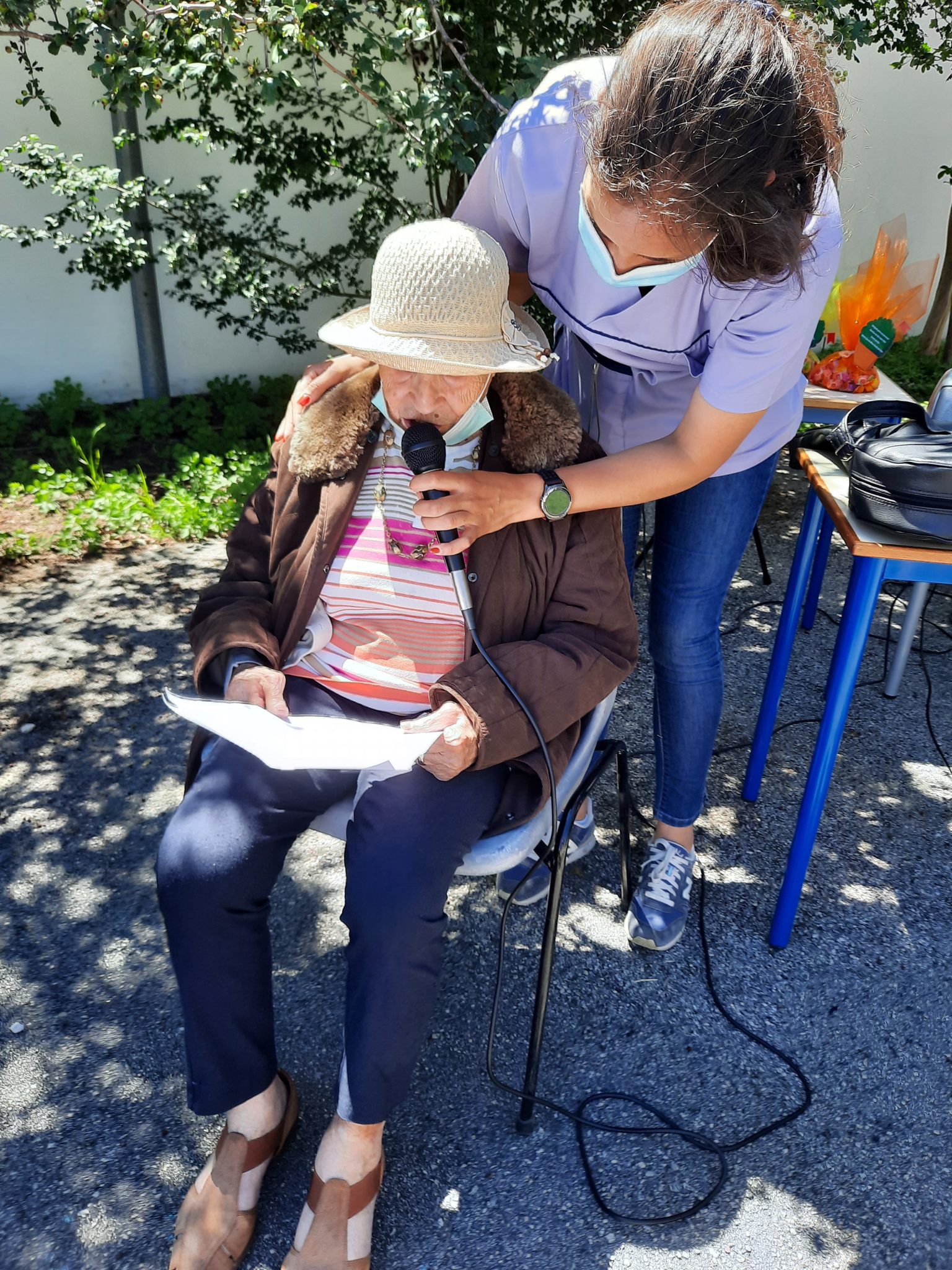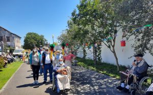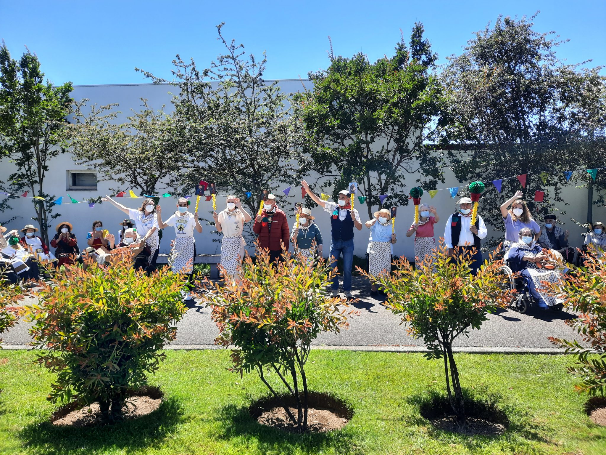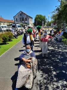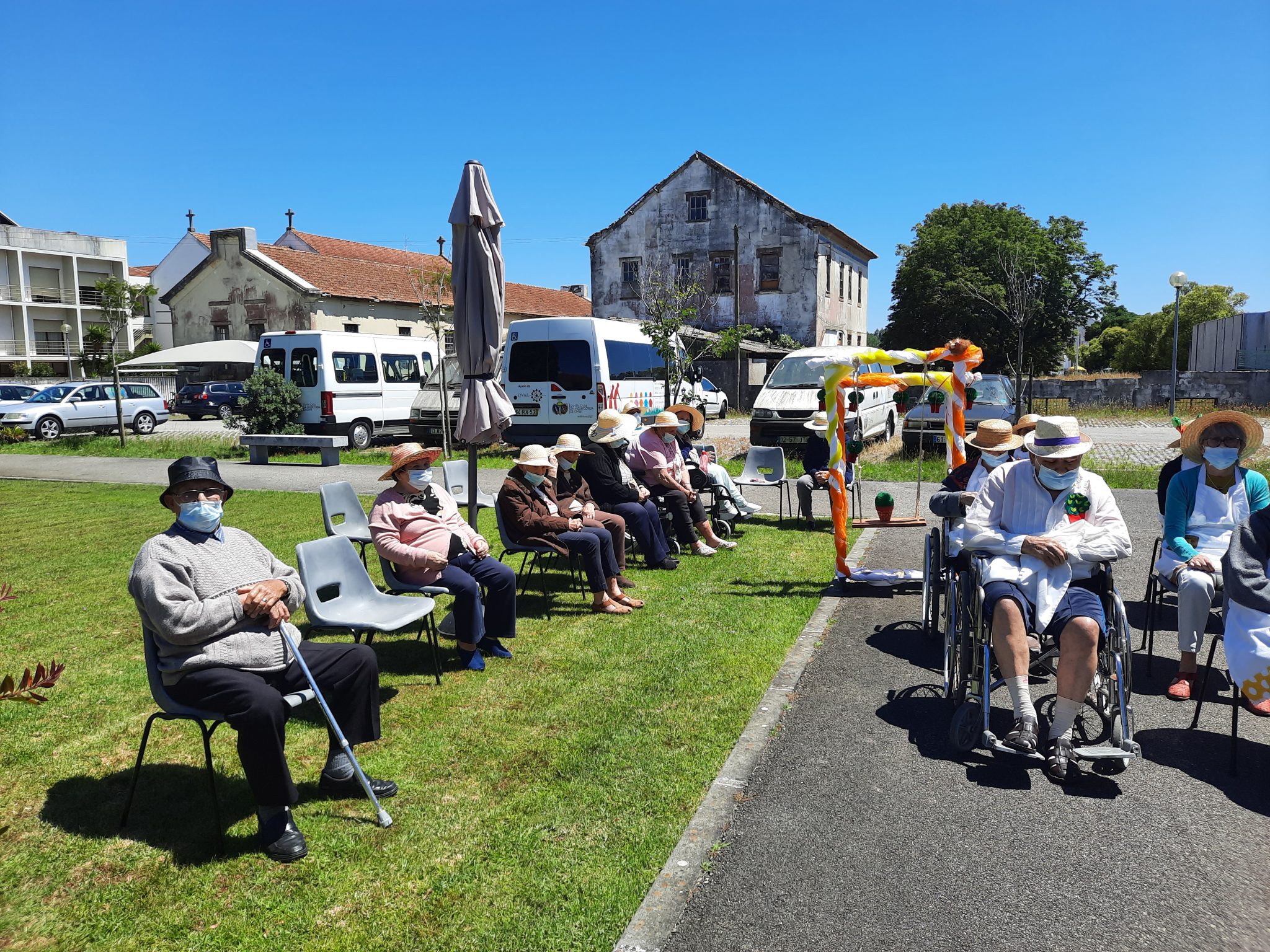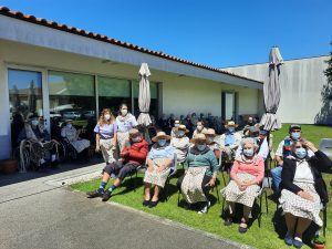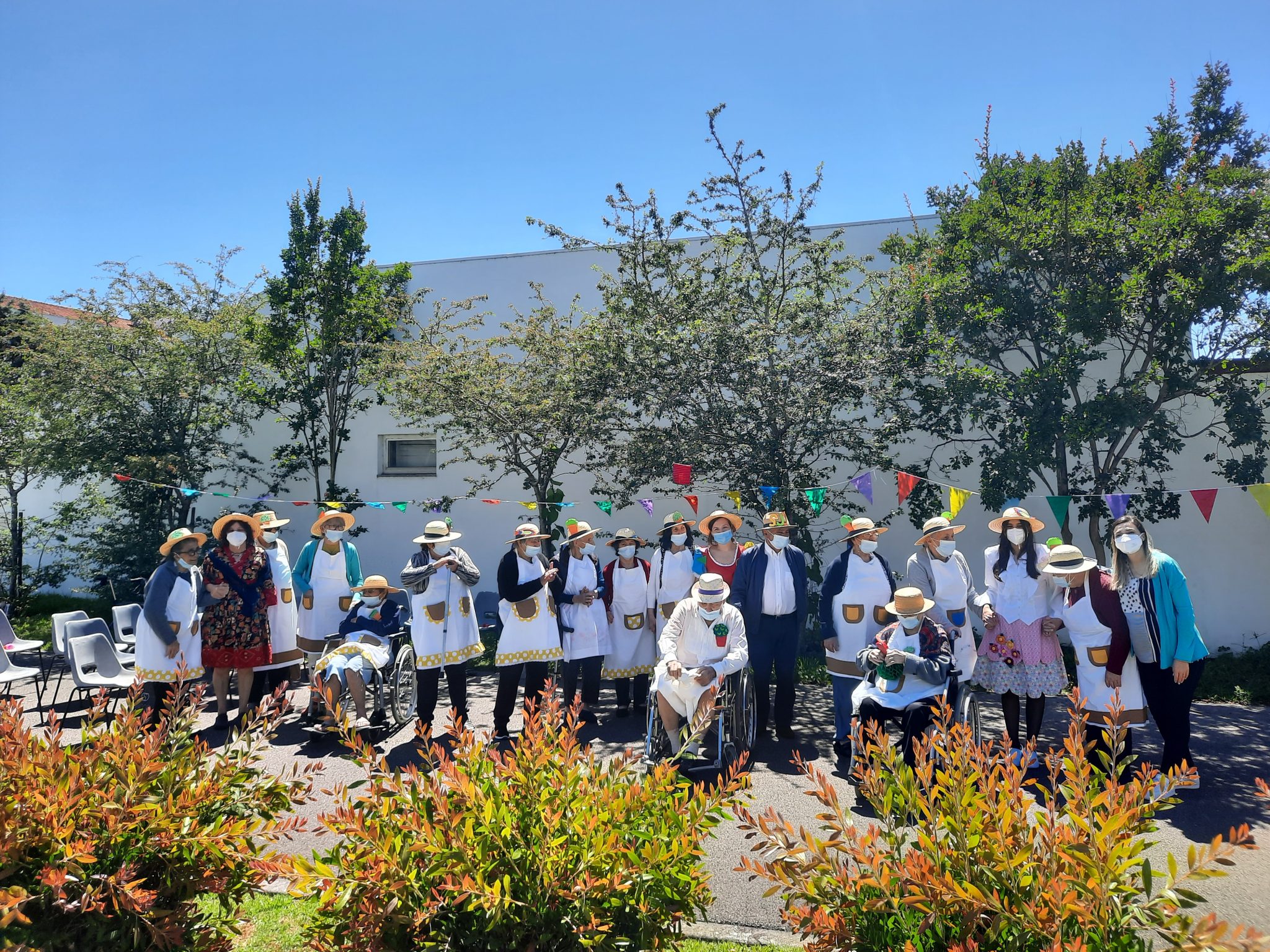 O jardim do Centro de Dia recebeu os convidados, o som de alegres melodias e as tradicionais marchas de São Pedro impulsionaram os festejos numa bela tarde de bailarico intrageracional.