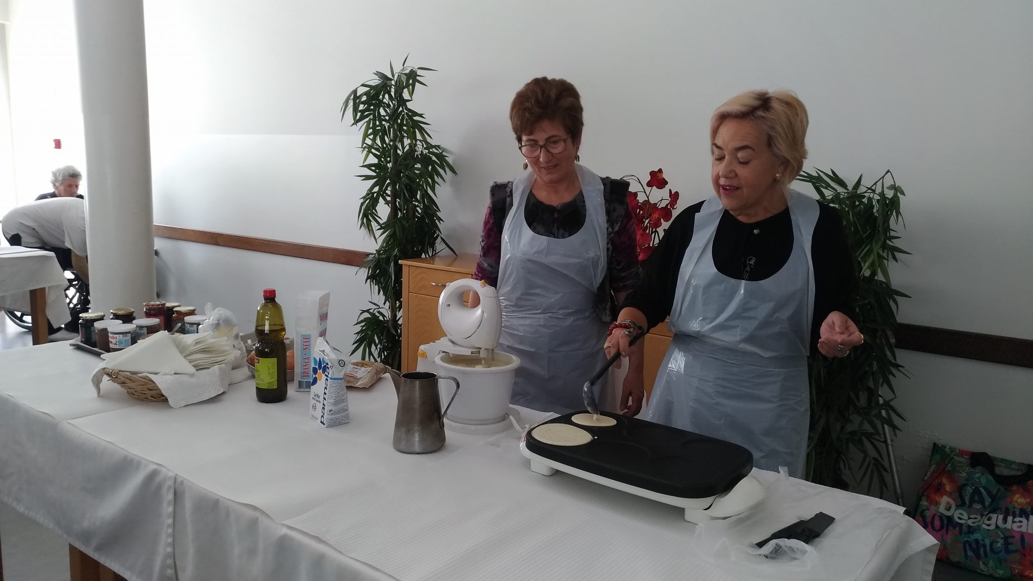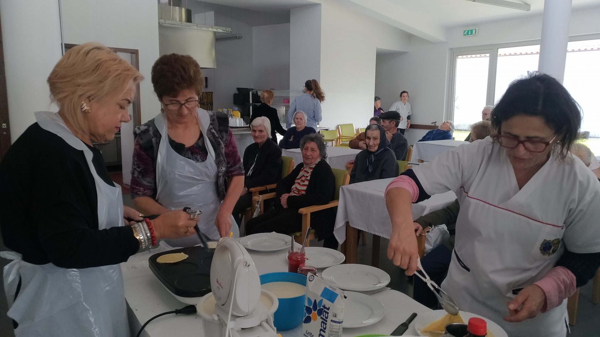 Contamos com a presença de duas convidadas, a Dª Palmira e a Dª Beatriz que nos presentearam com uma tarde de crepes e de cantorias animadas. Esta foi uma atividade do agrado de todos os idosos onde puderam saborear crepes deliciosos e cantar “músicas do seu tempo”.