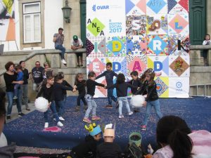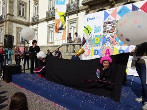 A sala 10 do Pré-Escolar da Santa Casa da Misericórdia de Ovar envolveu-se nesta iniciativa e no dia 6 de maio dinamizou a hora do conto com uma história intitulada “A cidade solidariedade”. No tempo do “Era uma Vez”, conta-se que há muito tempo atrás vivia um poeta que encantava as pessoas com as suas palavras mágicas. Um dia inventou uma poesia, por encanto gestos de Solidariedade foram espalhados pela cidade e a partir desse dia, todos os habitantes da Cidade colaboravam uns com os outros. Foi por isso que esta cidade foi batizada com o nome Solidariedade. Esta história teve a participação das crianças, que alegremente interagiram na mesma, aparecendo por detrás de um pano preto com cabeças coloridas representando as personagens da história.