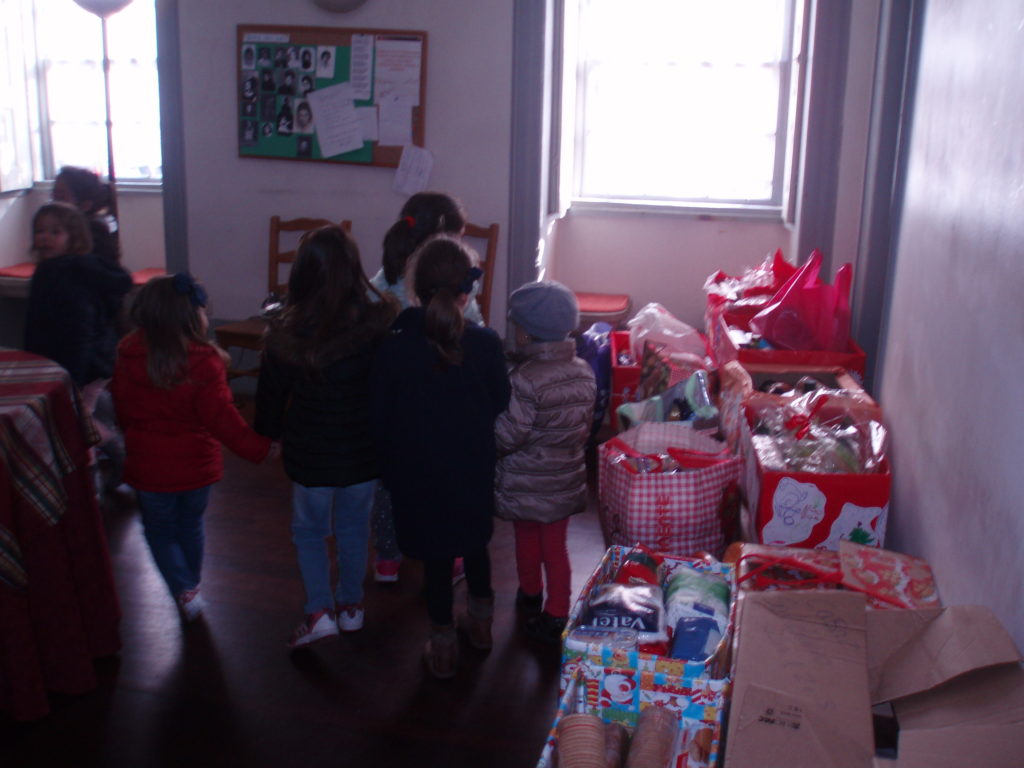 Sensíveis a este tema, as crianças trouxeram de suas casas vários bens alimentares e decoraram caixas nas quais transportaram os alimentos até ao Centro Comunitário Espaço Aberto, para serem entregues a famílias carenciadas.