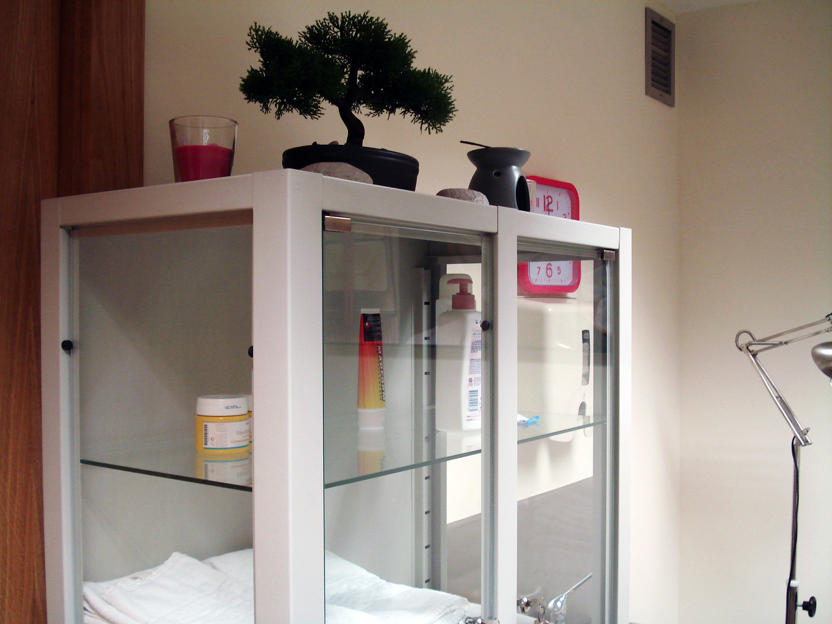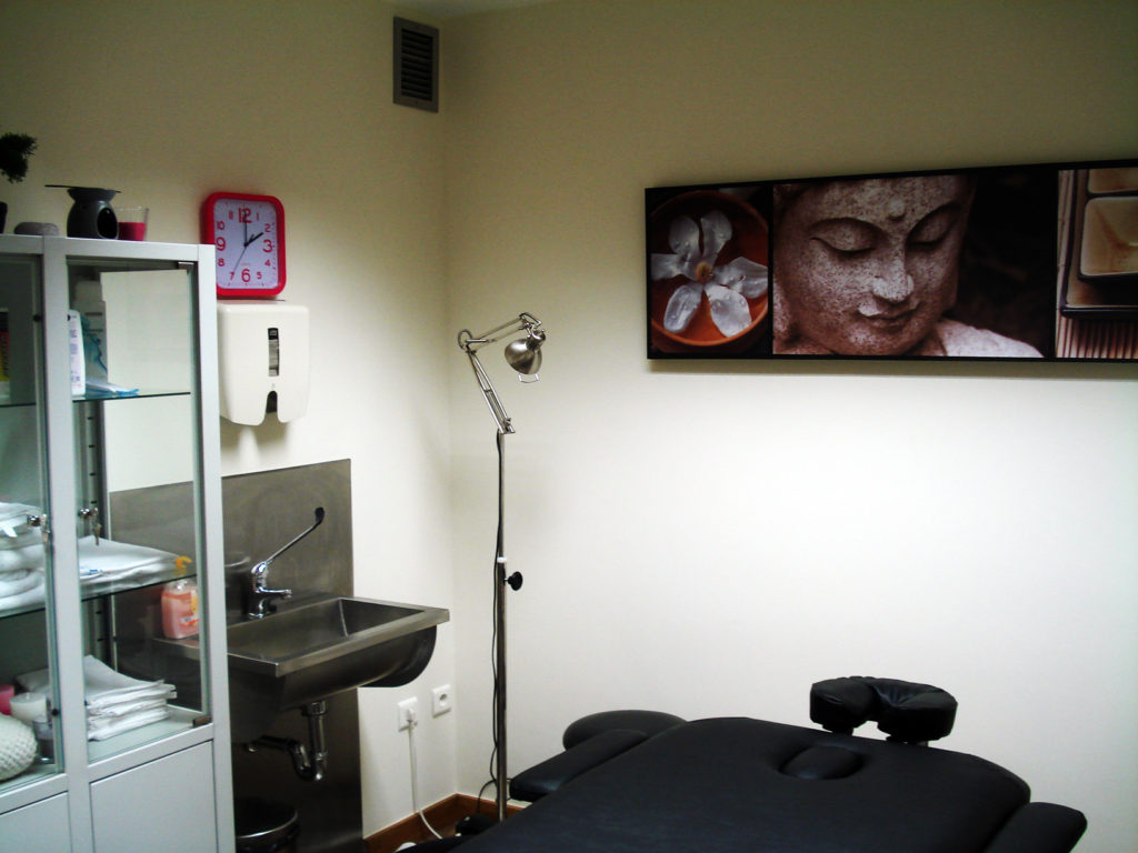 A sala foi decorada de forma muito simples com cores neutras e poucos objectos para que ficasse o mais “clean” possível. Climatizada e com todos os produtos necessários à realização das massagens, a Clínica pretende permitir uma melhor experiência e conforto aos seus clientes.
