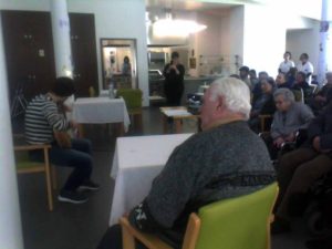 Durante 1hora e 15minutos a palestra possibilitou aos idosos contactarem com as violas tradicionais portuguesas, o canto alentejano, e o fado. A palestra proporcionou alguns momentos musicais interpretados à guitarra portuguesa e ao cavaquinho pelo professor, e na reta final num ambiente familiar e descontraído, os idosos foram convidados a tocar e cantar a música tradicional portuguesa “Caninha Verde”. Após a palestra os idosos reagiram com um feedback muito positivo perante esta iniciativa: