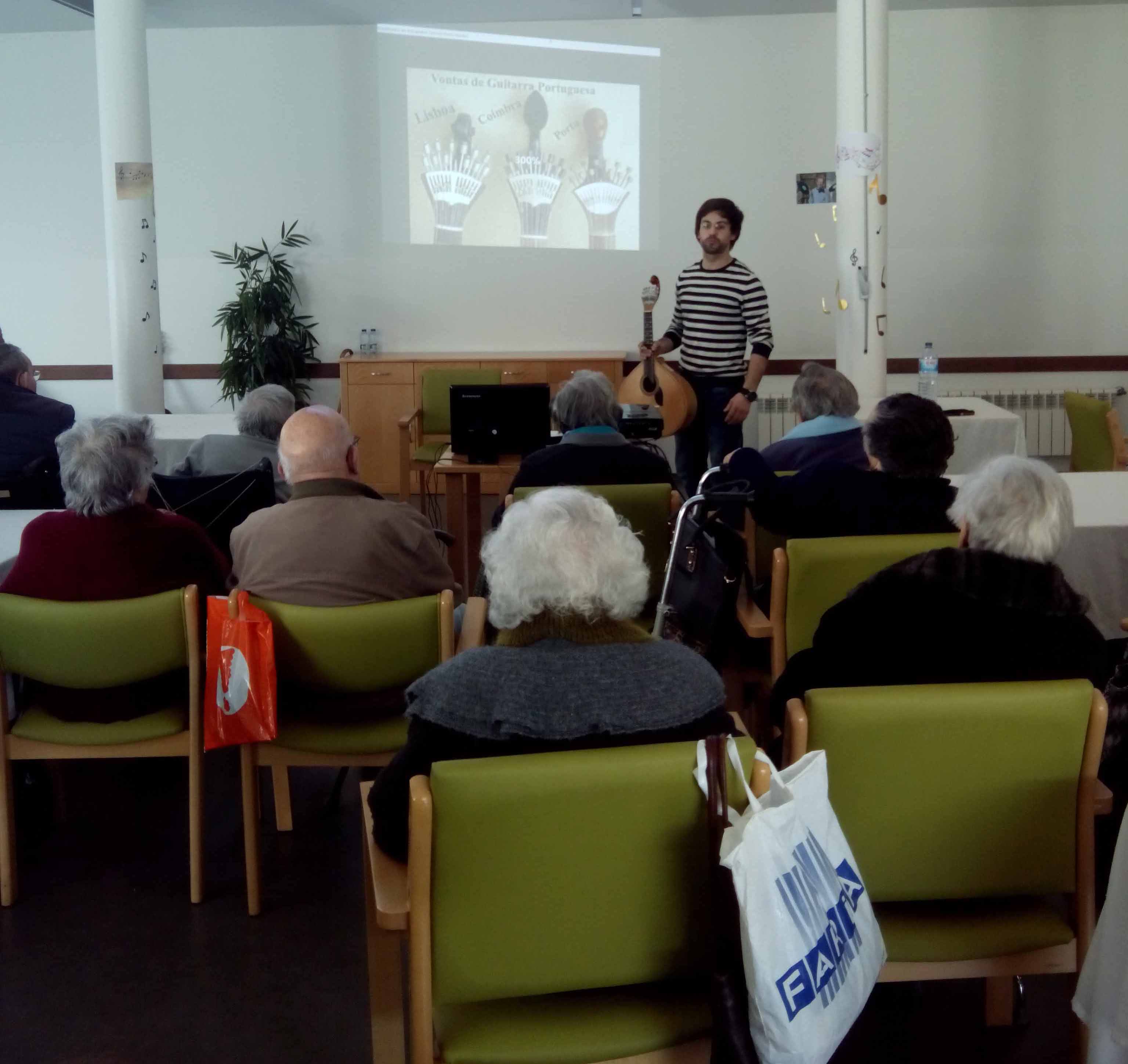 Durante 1hora e 15minutos a palestra possibilitou aos idosos contactarem com as violas tradicionais portuguesas, o canto alentejano, e o fado. A palestra proporcionou alguns momentos musicais interpretados à guitarra portuguesa e ao cavaquinho pelo professor, e na reta final num ambiente familiar e descontraído, os idosos foram convidados a tocar e cantar a música tradicional portuguesa “Caninha Verde”. Após a palestra os idosos reagiram com um feedback muito positivo perante esta iniciativa: