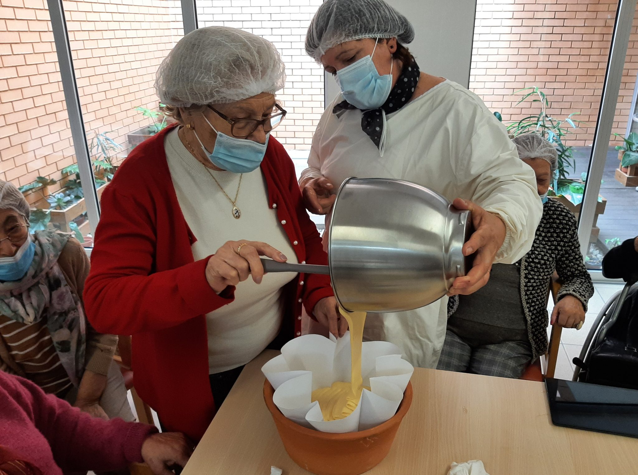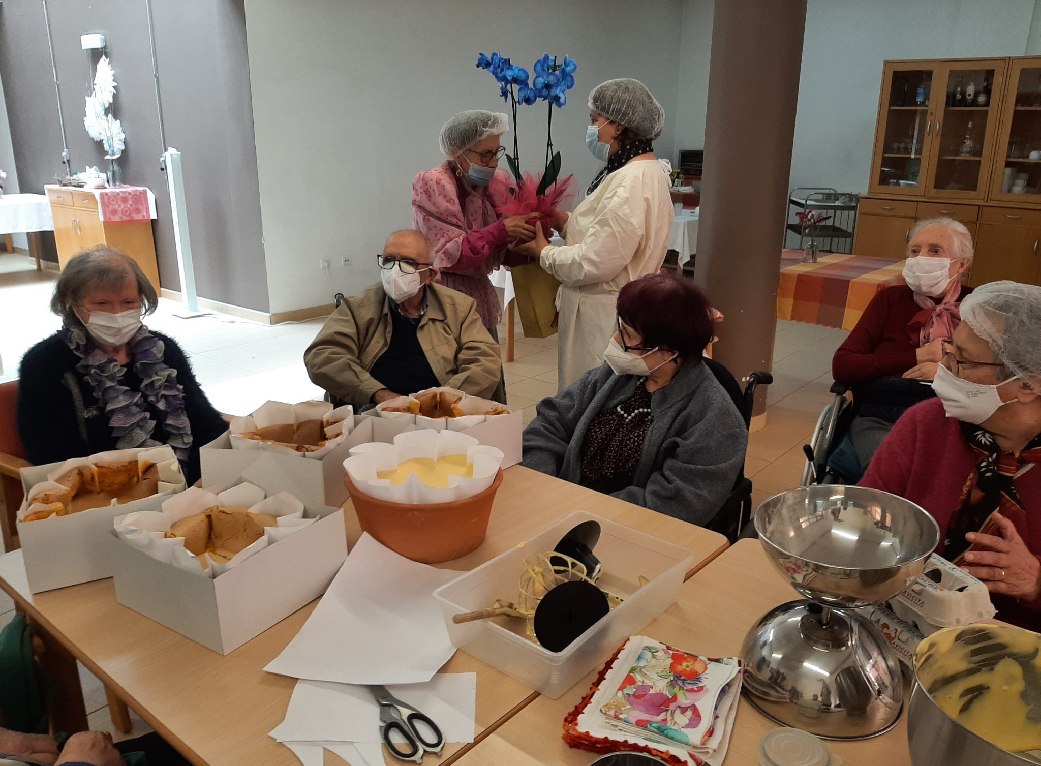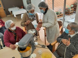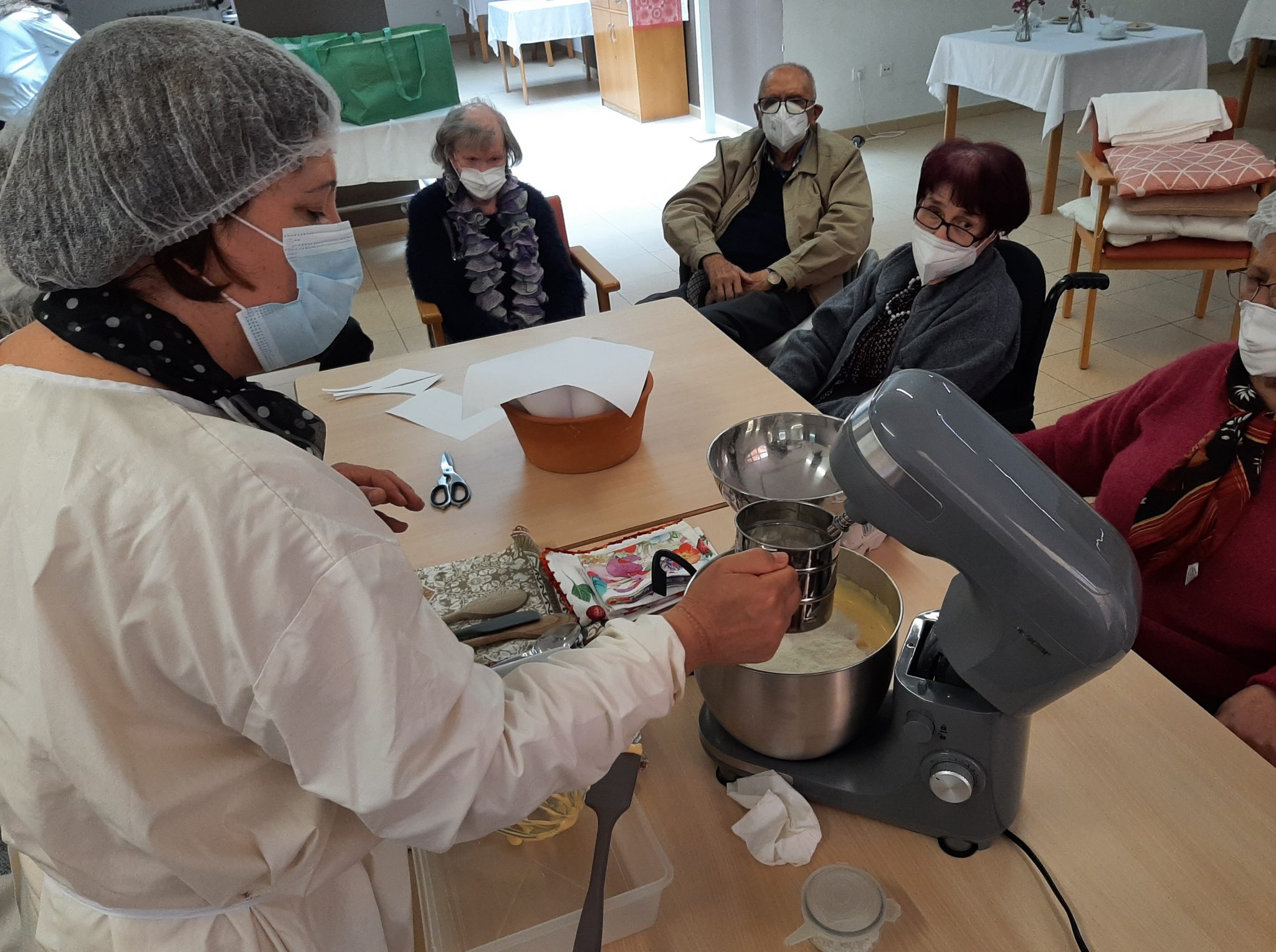 O Pão de Ló de Ovar é o doce que não pode faltar à mesa de quem vive em Ovar na época da Páscoa. Na nossa cidade existem vários estabelecimentos que o confecionam, mas este ano, na Casa de S. Thomé, solicitamos a ajuda da funcionária Fátima Dias, perita na confeção deste doce conventual e que se disponibilizou para ensinar os segredos desta receita. Os ingredientes e a confeção deste doce são bem simples, farinha, açúcar e muitos ovos. Antes de ir para o forno, aprendemos a técnica de dobrar o papel almaço, papel específico para a realização da confeção do doce, que foi colocado na forma de barro para suportar a massa e servir de base para ser servido. Foi com muito agrado que servimos esta iguaria como sobremesa na semana da Páscoa, teve um gosto muito especial pois foi feito por todos nós. Porém, nada disto seria possível sem a ajuda e dedicação da nossa funcionária Fátima que confecionou grande parte dos pães de ló em casa trazendo-os como oferta a todos os residentes. Este pequeno gesto significou muito para todos os residentes. Na conclusão desta atividade, fizemos questão de lhe agradecer toda a entrega, tempo, atenção e carinho que dedicou a esta iniciativa. Muito obrigada Fátima. Para o ano repetimos.