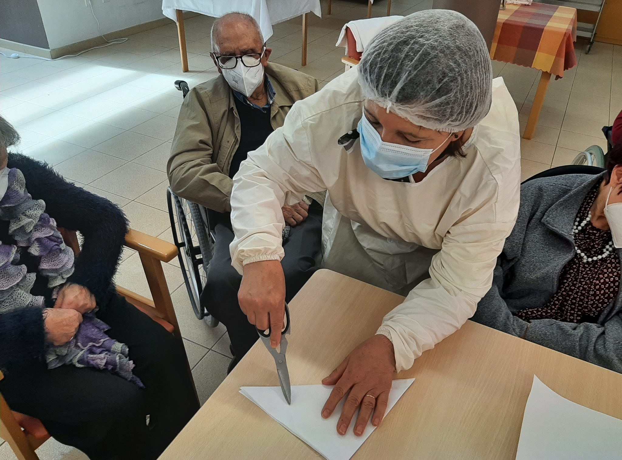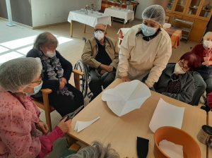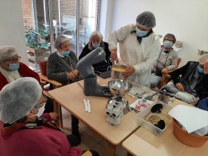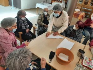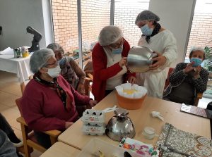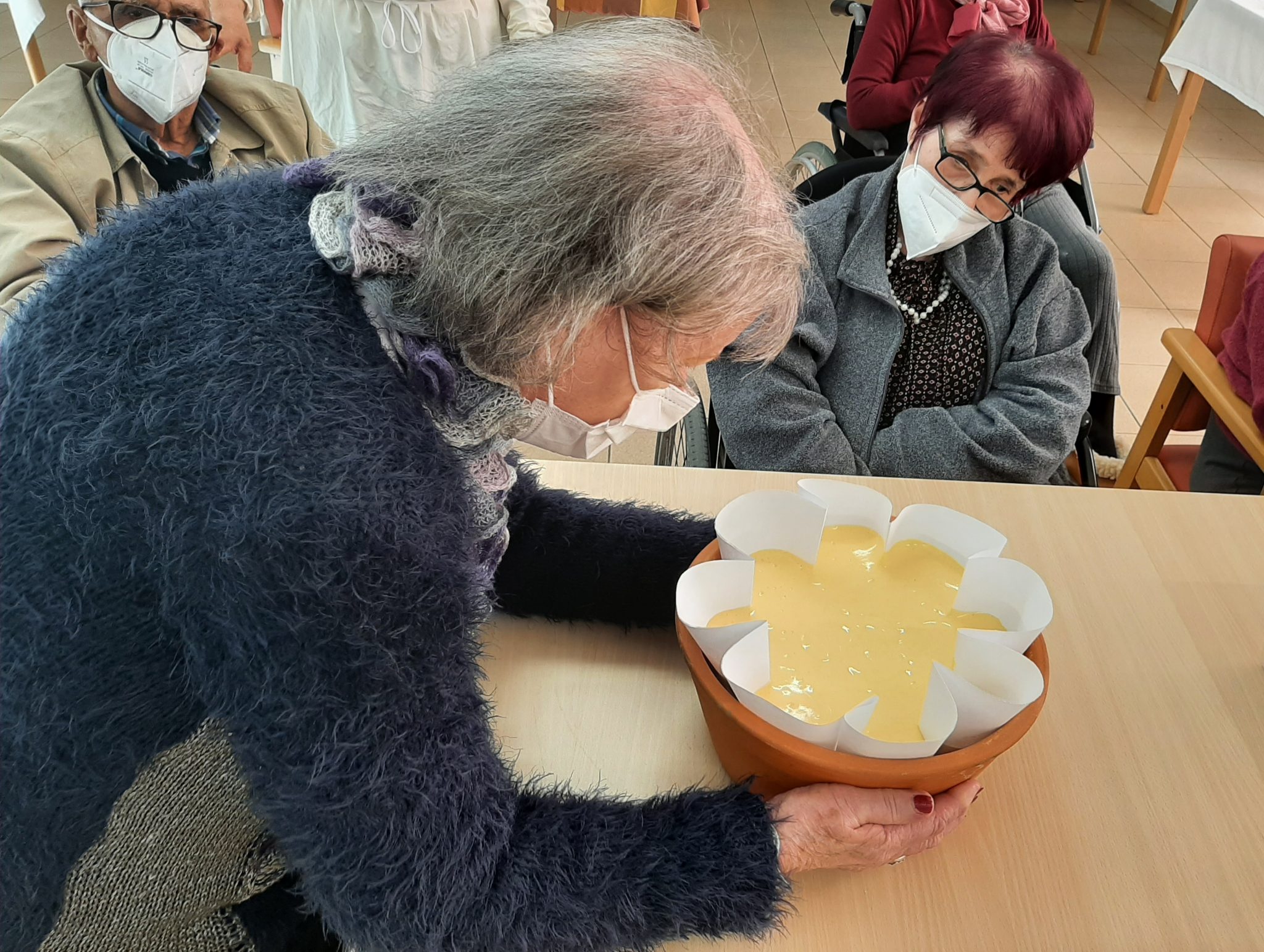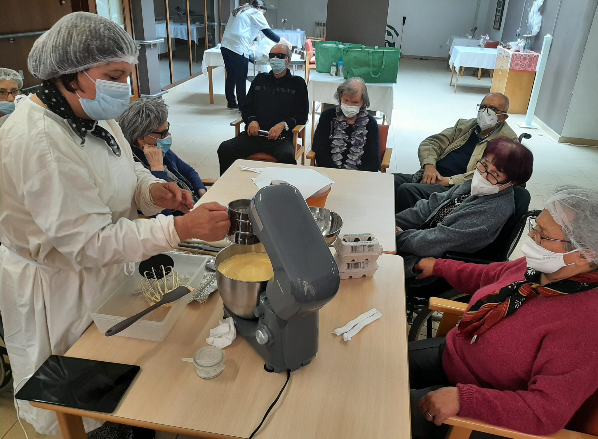 O Pão de Ló de Ovar é o doce que não pode faltar à mesa de quem vive em Ovar na época da Páscoa. Na nossa cidade existem vários estabelecimentos que o confecionam, mas este ano, na Casa de S. Thomé, solicitamos a ajuda da funcionária Fátima Dias, perita na confeção deste doce conventual e que se disponibilizou para ensinar os segredos desta receita. Os ingredientes e a confeção deste doce são bem simples, farinha, açúcar e muitos ovos. Antes de ir para o forno, aprendemos a técnica de dobrar o papel almaço, papel específico para a realização da confeção do doce, que foi colocado na forma de barro para suportar a massa e servir de base para ser servido. Foi com muito agrado que servimos esta iguaria como sobremesa na semana da Páscoa, teve um gosto muito especial pois foi feito por todos nós. Porém, nada disto seria possível sem a ajuda e dedicação da nossa funcionária Fátima que confecionou grande parte dos pães de ló em casa trazendo-os como oferta a todos os residentes. Este pequeno gesto significou muito para todos os residentes. Na conclusão desta atividade, fizemos questão de lhe agradecer toda a entrega, tempo, atenção e carinho que dedicou a esta iniciativa. Muito obrigada Fátima. Para o ano repetimos.