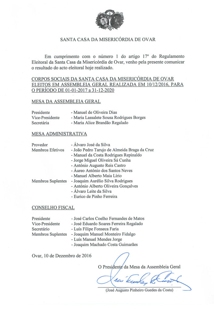 Resultado Eleitoral dos Corpos Sociais para o período de 01/01/2017 a 31/12/2020 Posted by scmovar 12/12/2016 in Instituição