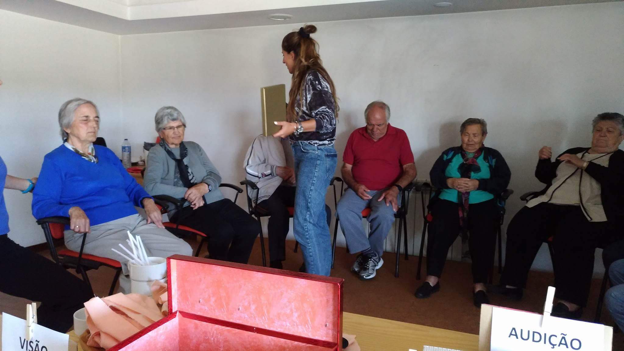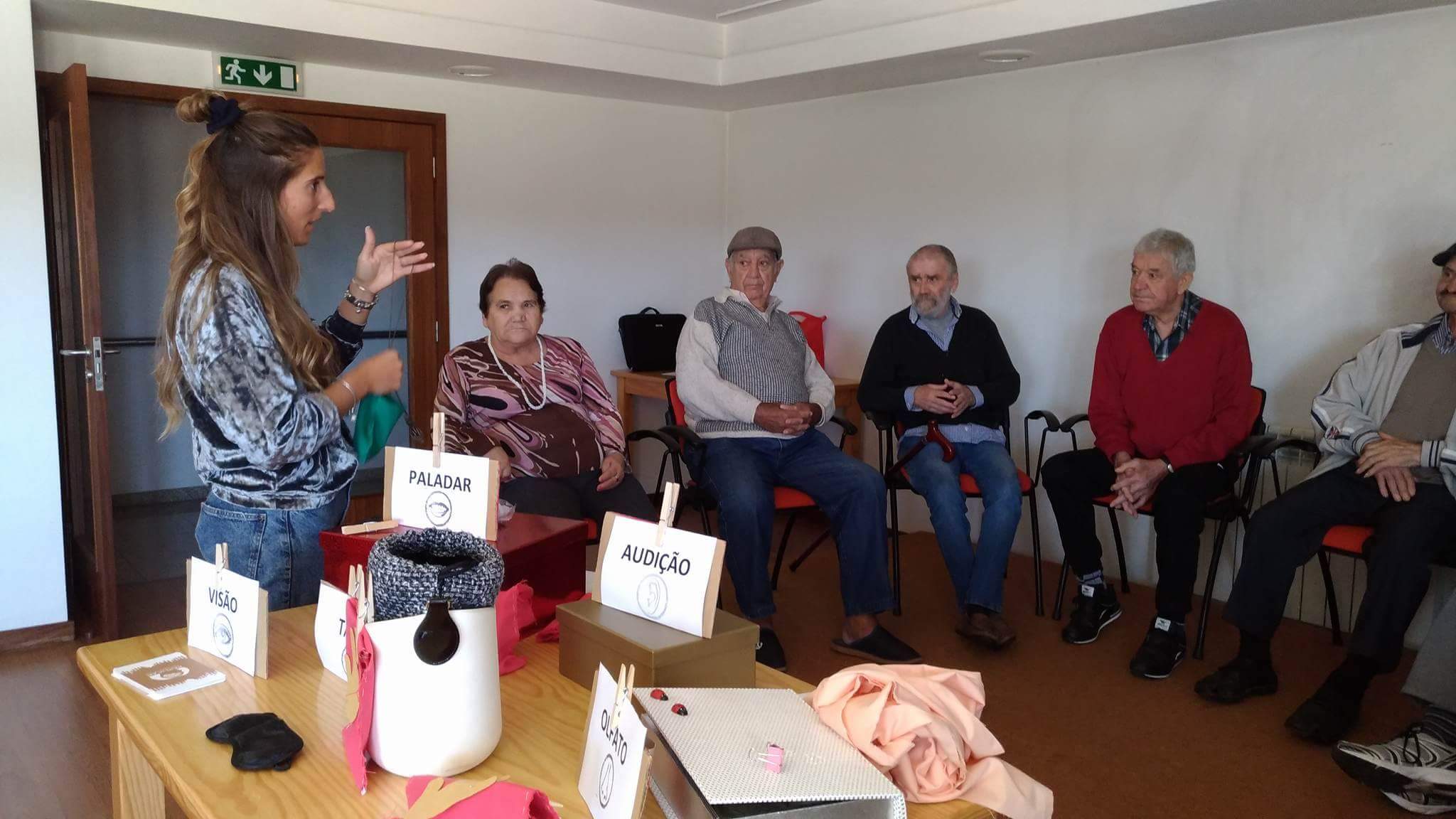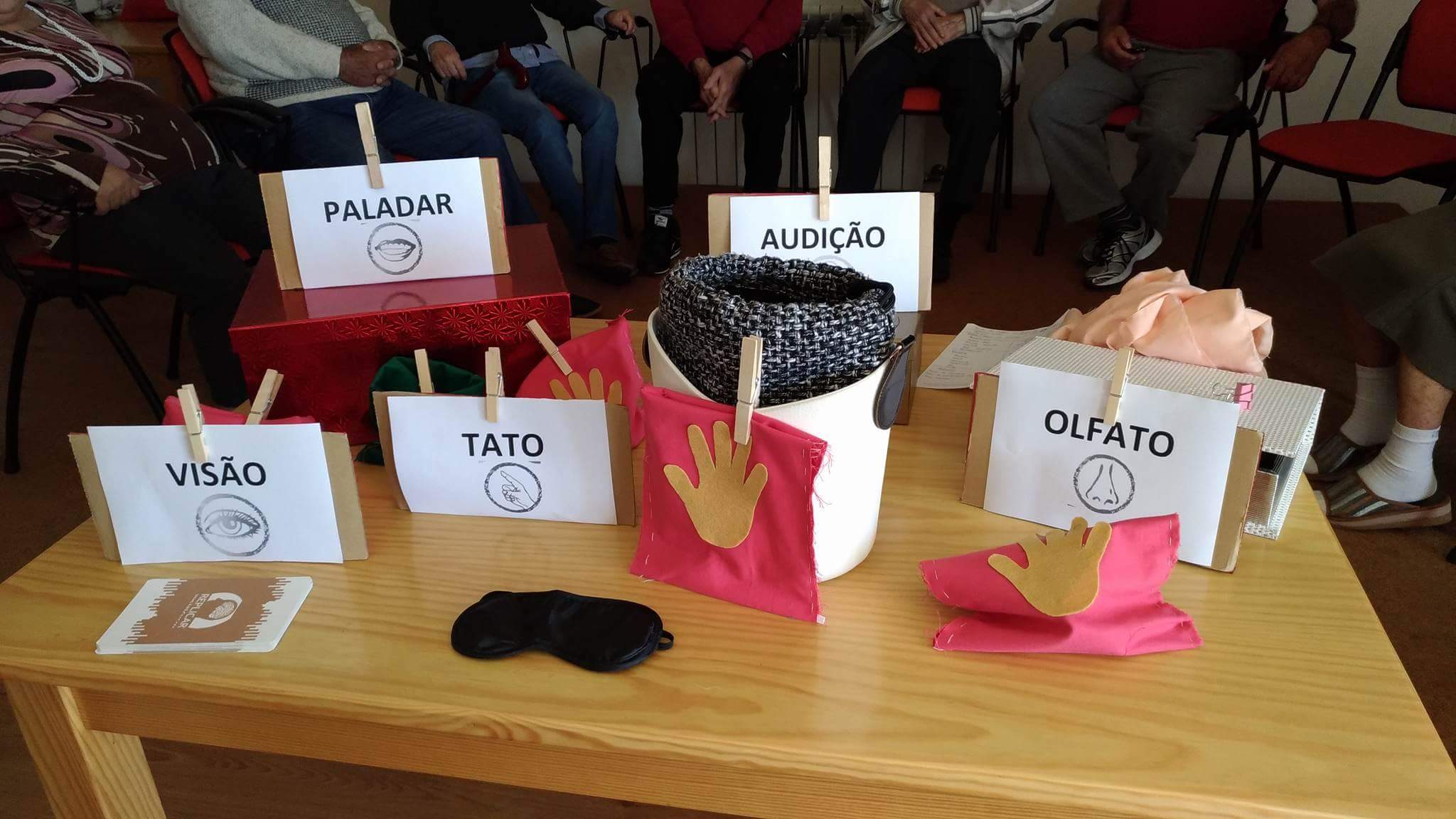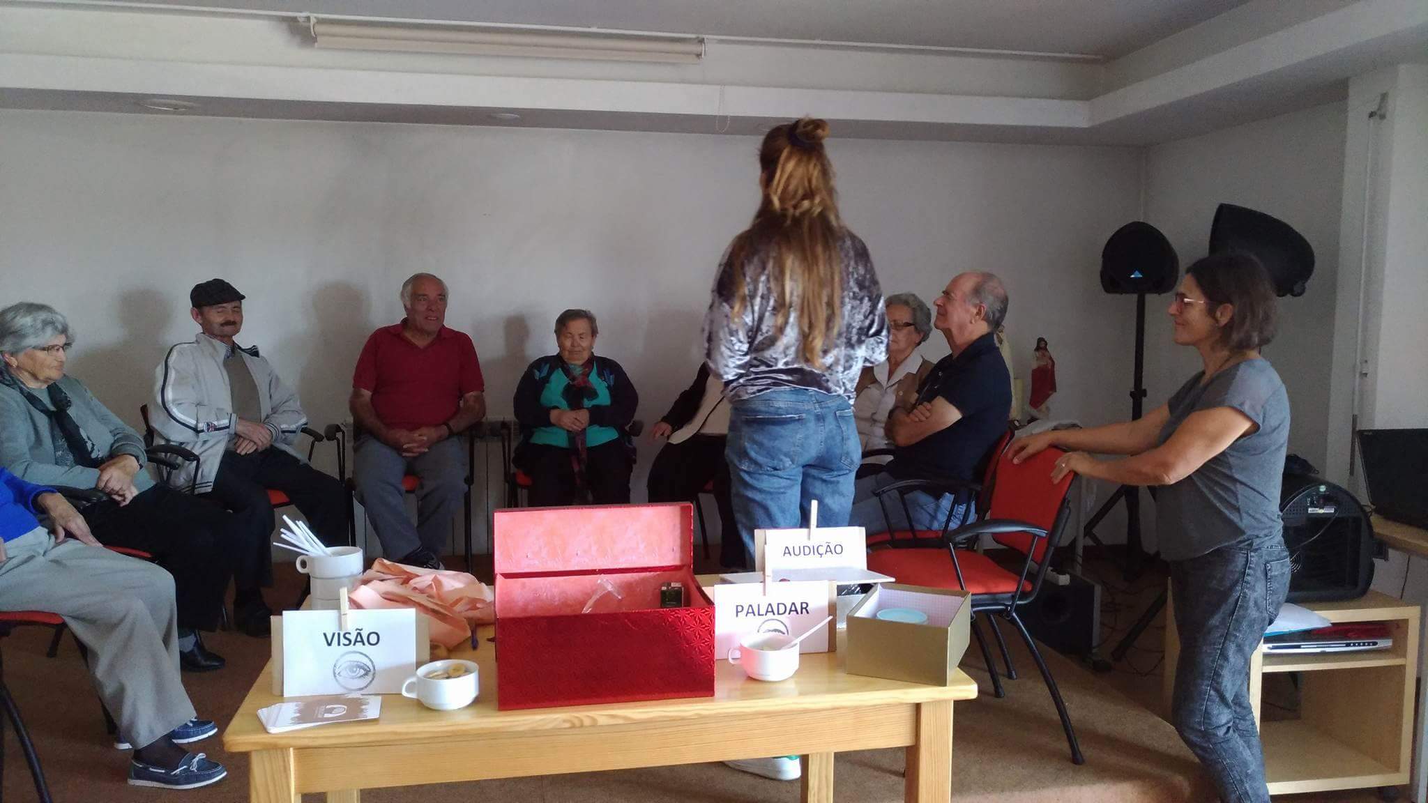 No sentido da visão foi necessário mais silêncio e concentração. Os idosos memorizaram uma ordem de objetos para posteriormente a dizerem corretamente sem estarem a ver.