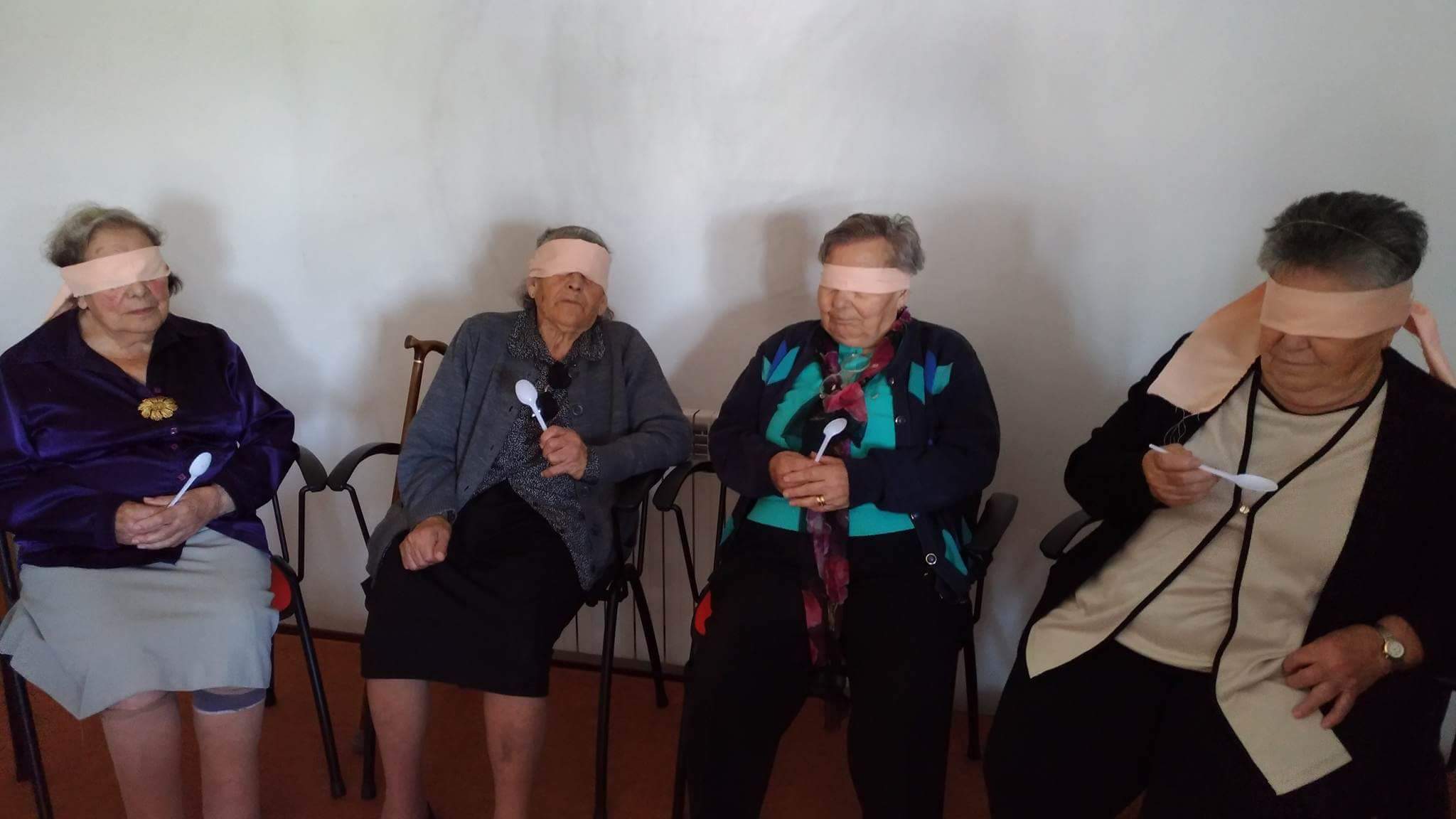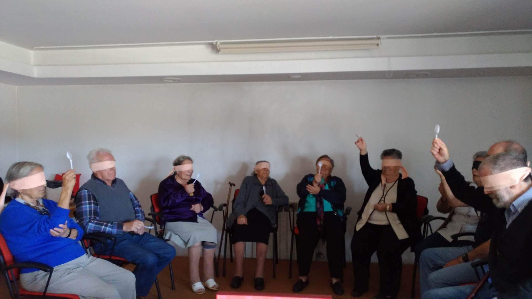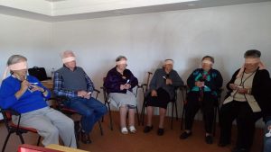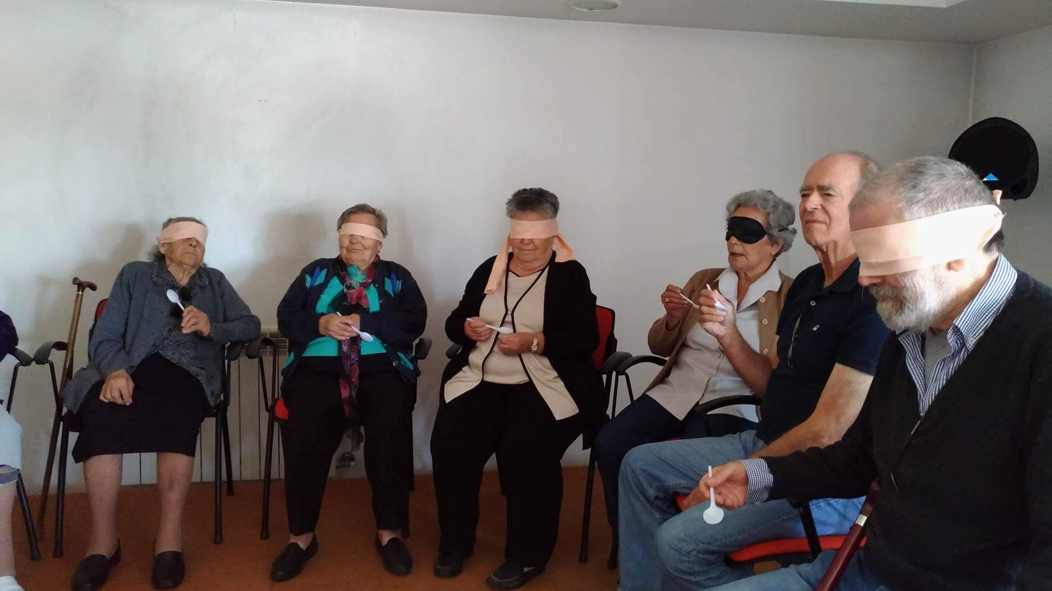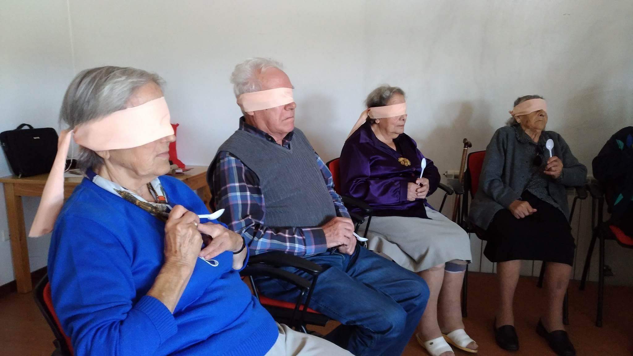 No sentido da visão foi necessário mais silêncio e concentração. Os idosos memorizaram uma ordem de objetos para posteriormente a dizerem corretamente sem estarem a ver.
